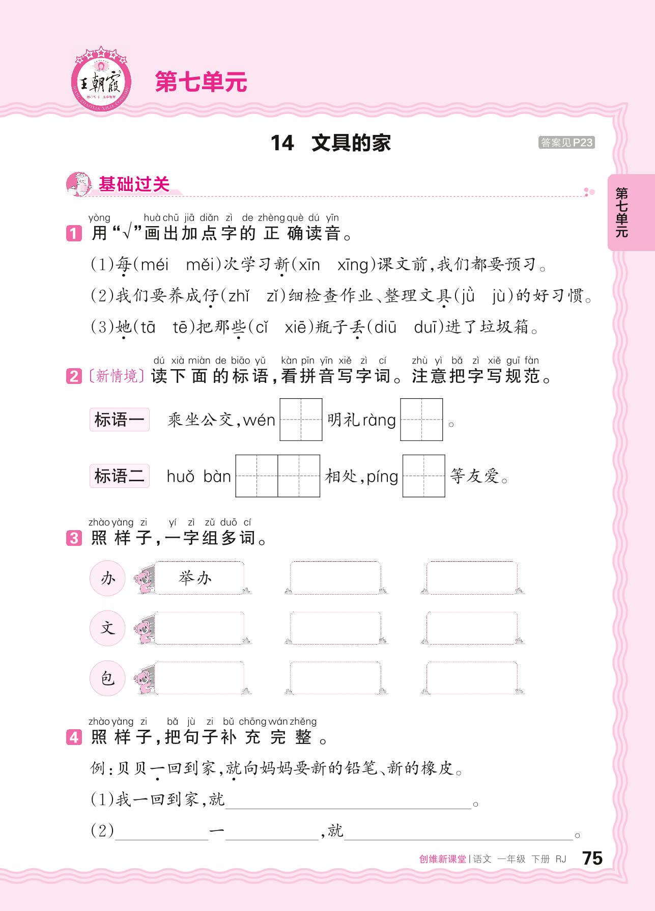 2024春下册一年级语文人教版 第七单元 习惯——14. 文具的家_R240119140128274