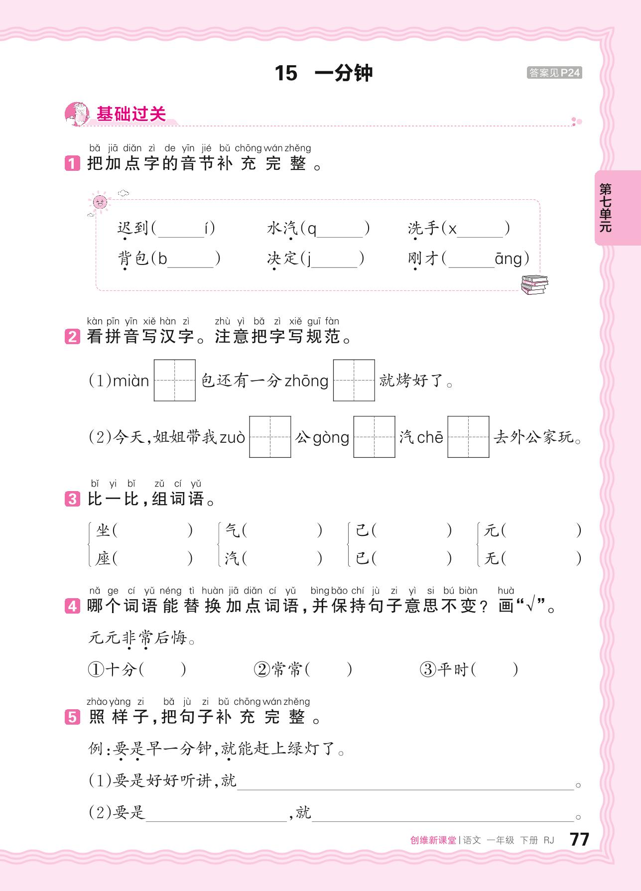 2024春下册一年级语文人教版 第七单元 习惯——15. 一分钟_R240119140130307