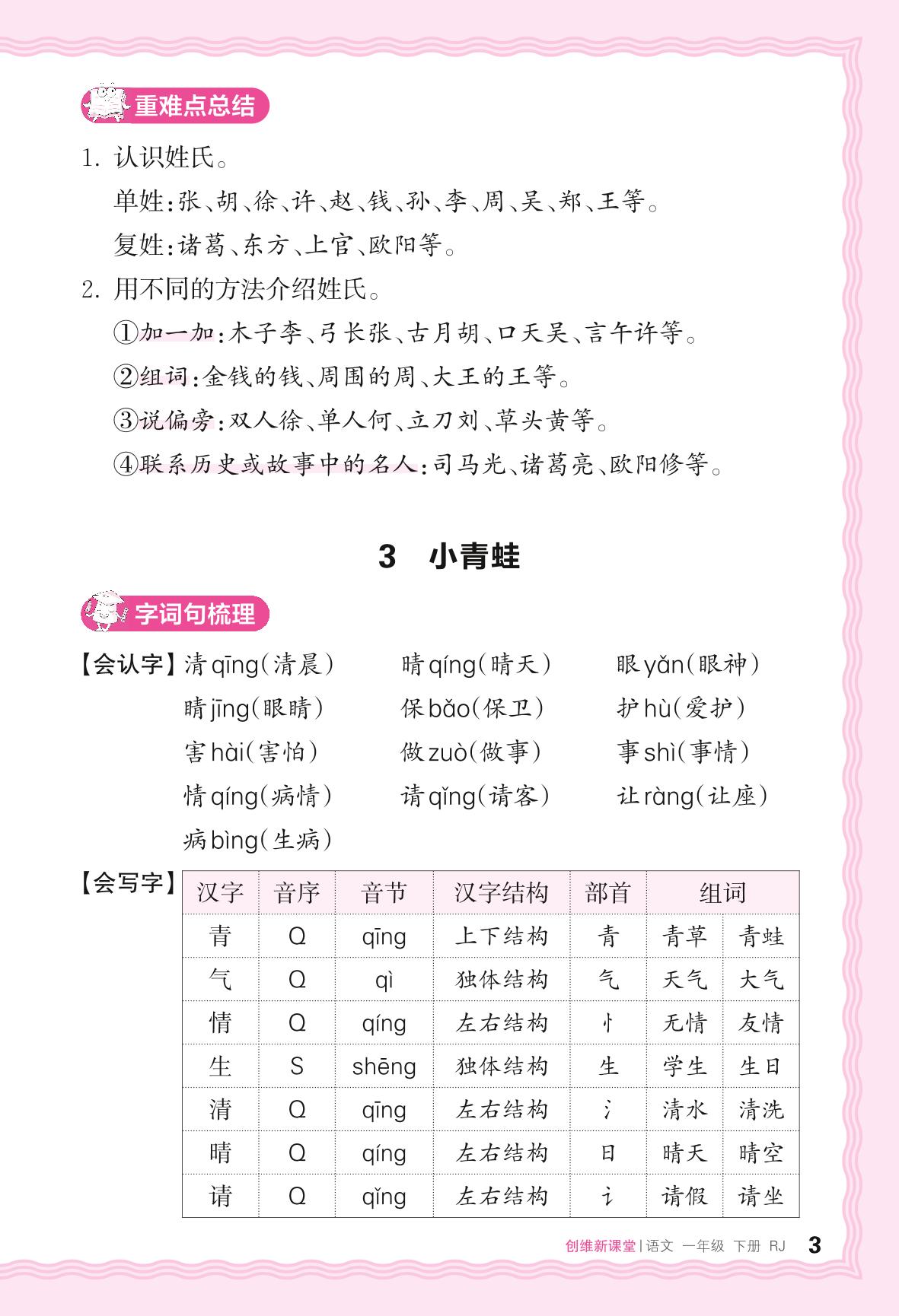 2024春下册一年级语文人教版 助学手册 第一单元——3. 小青蛙