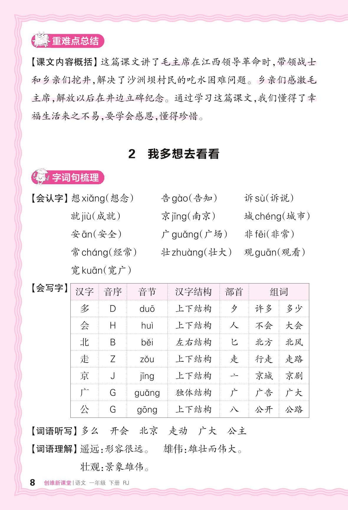 2024春下册一年级语文人教版 助学手册 第二单元——2. 我多想去看看