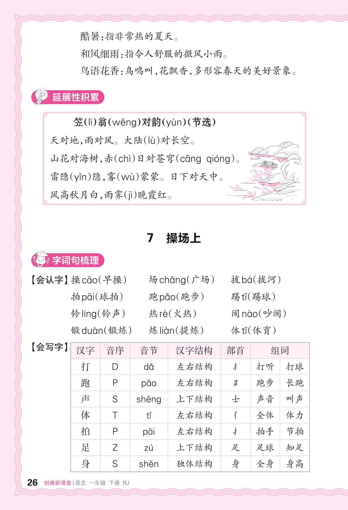 2024春下册一年级语文人教版 助学手册 第五单元——7. 操场上