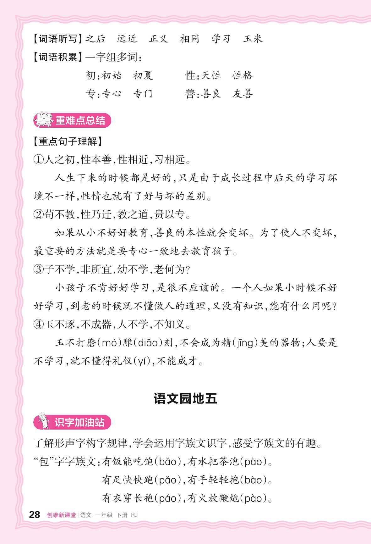 2024春下册一年级语文人教版 助学手册 第五单元——语文园地五