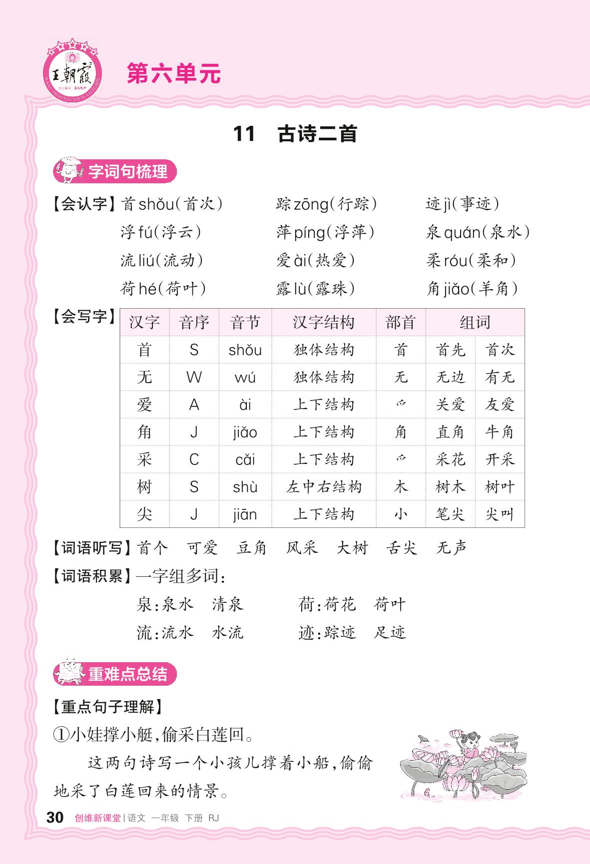 2024春下册一年级语文人教版 助学手册 第六单元——11. 古诗二首