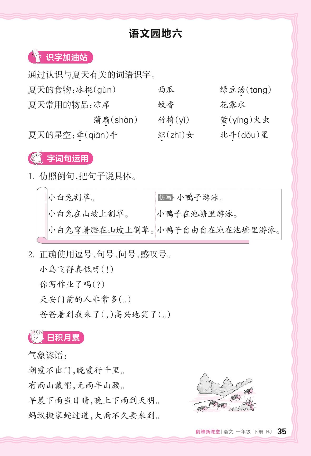 2024春下册一年级语文人教版 助学手册 第六单元——语文园地六