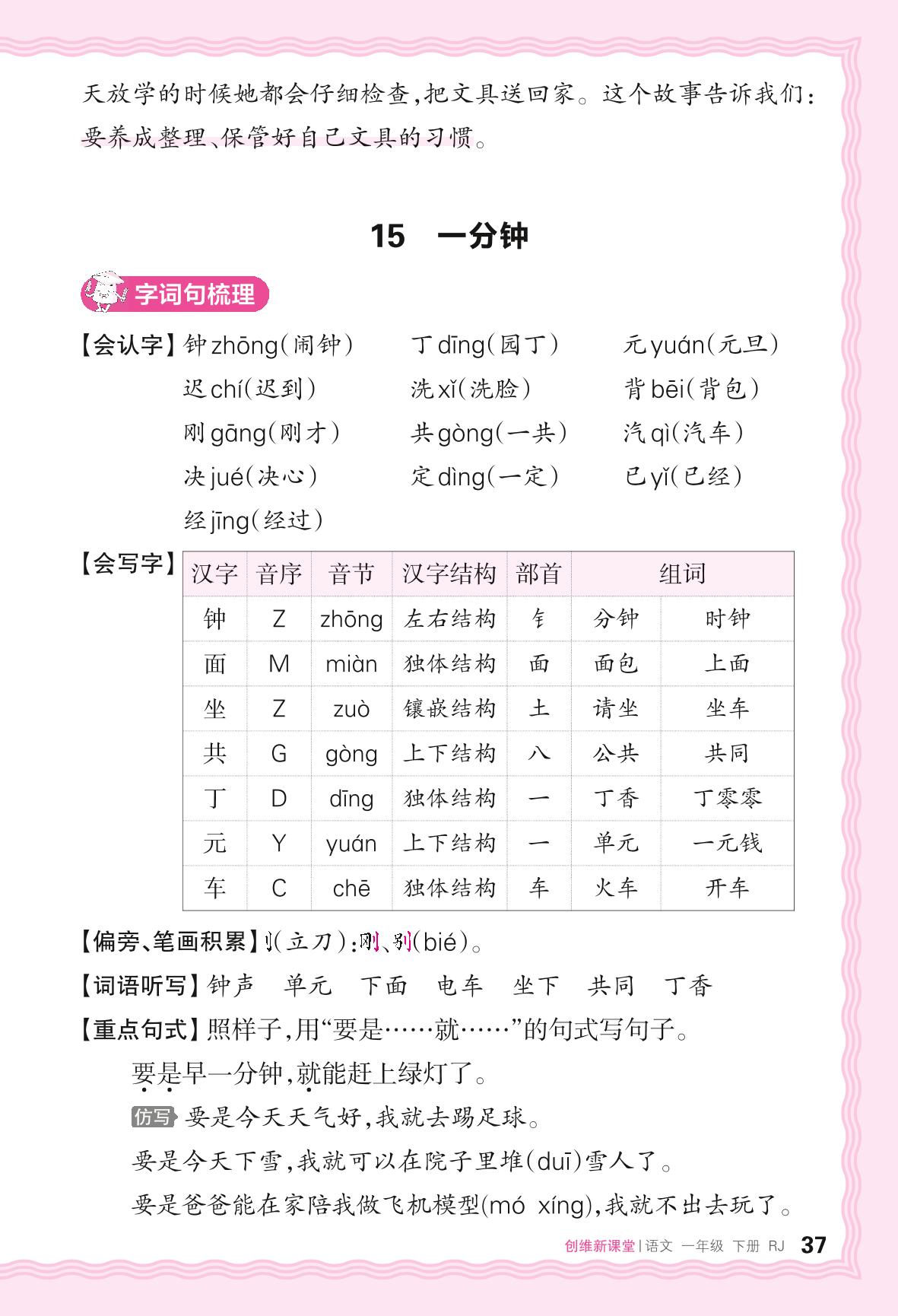 2024春下册一年级语文人教版 助学手册 第七单元——15. 一分钟