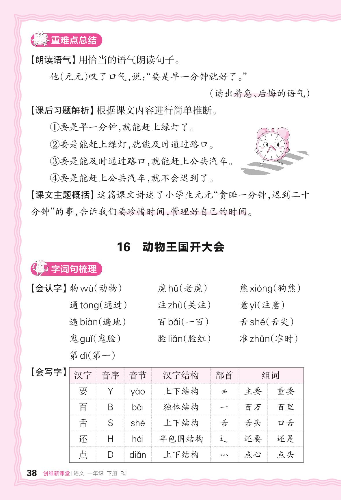 2024春下册一年级语文人教版 助学手册 第七单元——16. 动物王国开大会