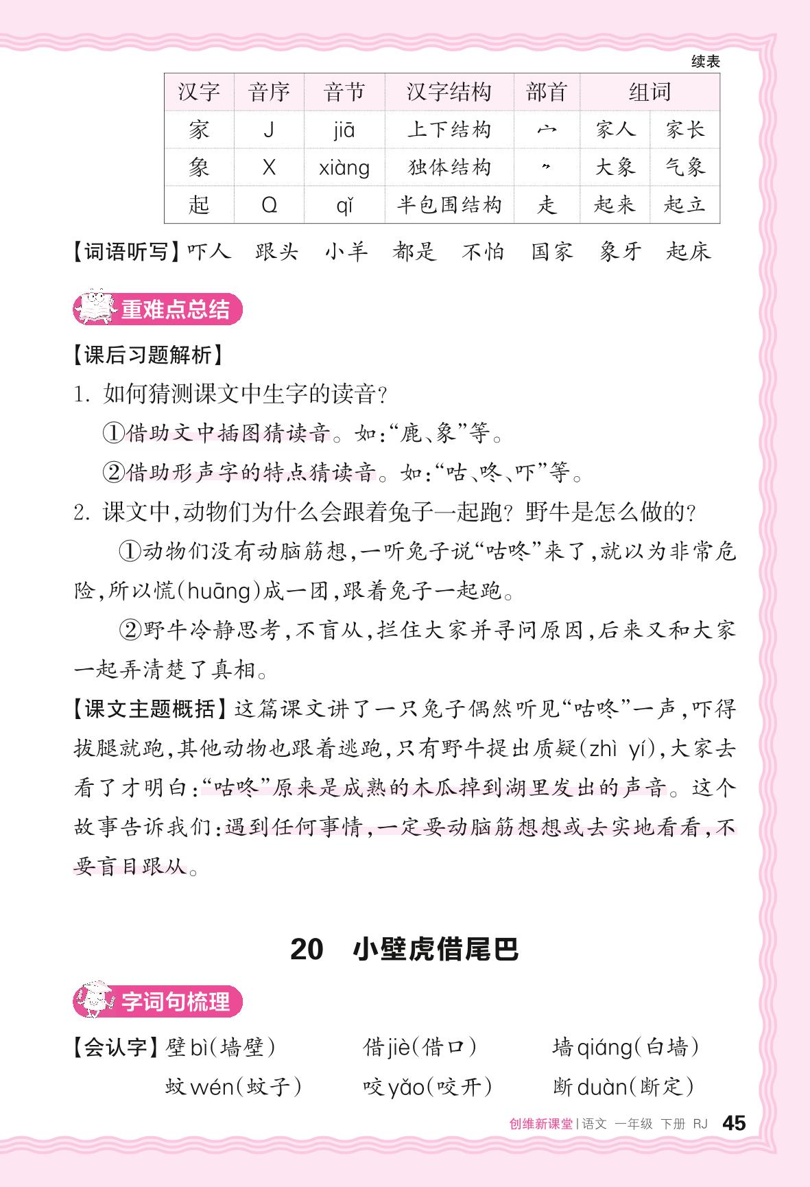 2024春下册一年级语文人教版 助学手册 第八单元——20. 小壁虎借尾巴