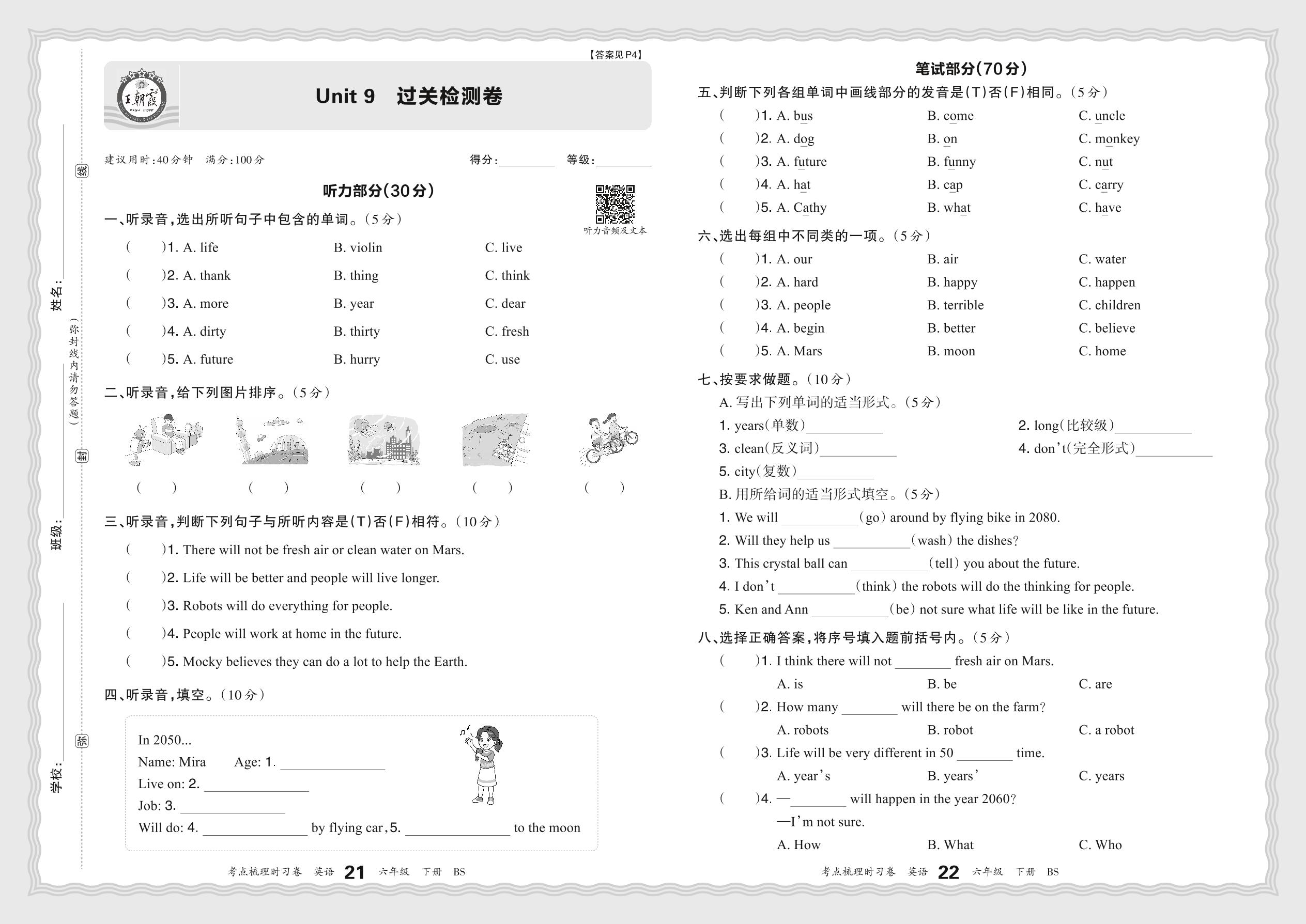 2024春下册六年级英语北师版 Unit 9 过关检测卷