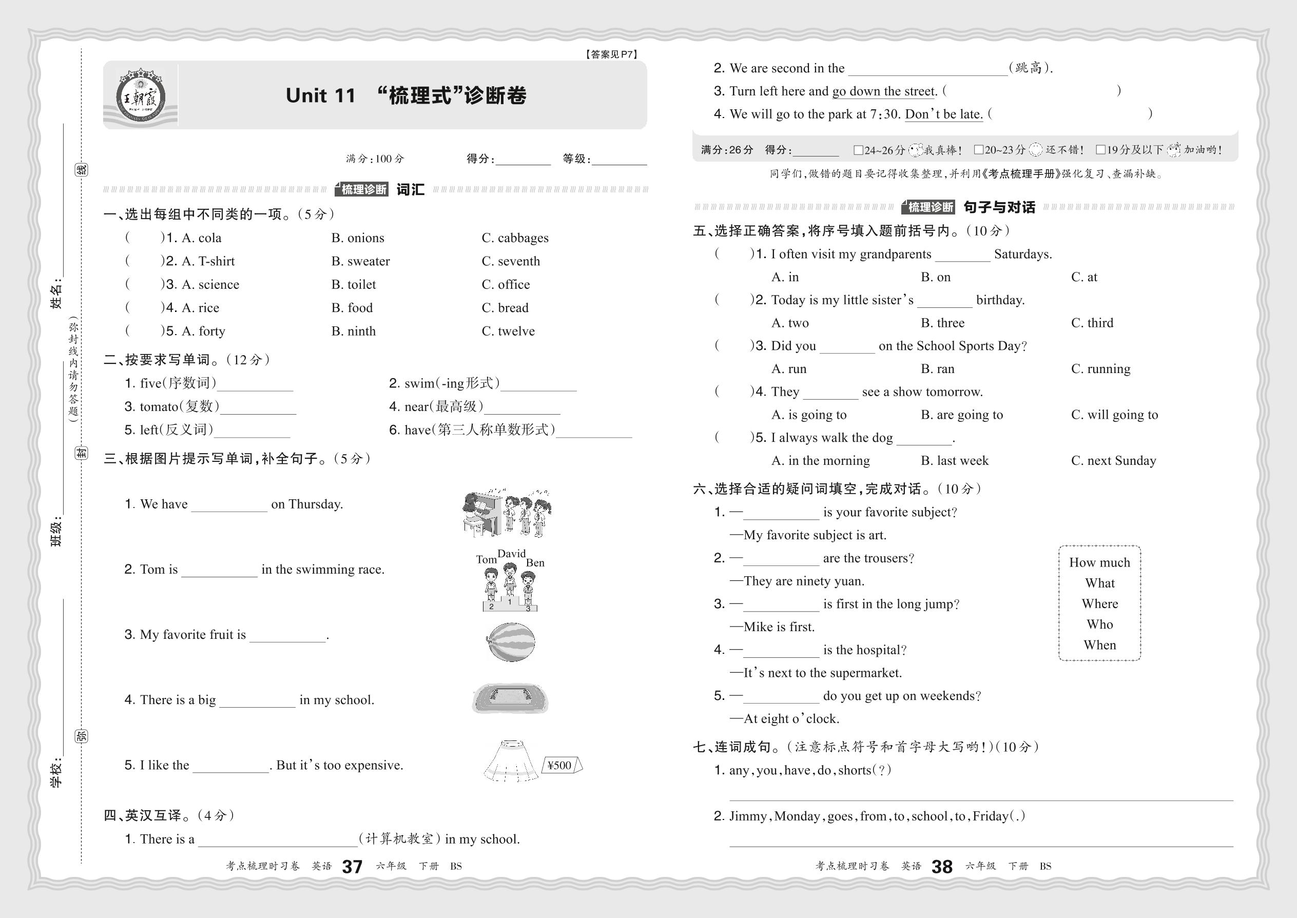 2024春下册六年级英语北师版 Unit 11 “梳理式”诊断卷