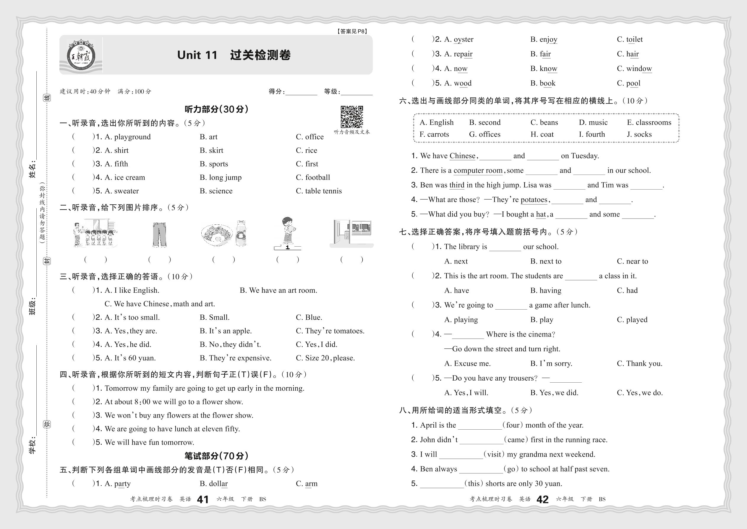 2024春下册六年级英语北师版 Unit 11 过关检测卷