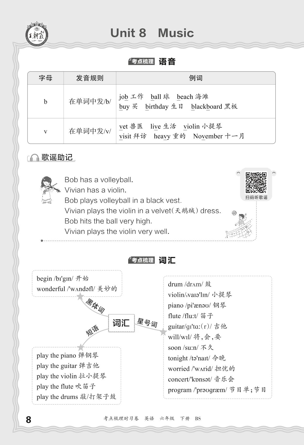 2024春下册六年级英语北师版 考点梳理手册——Unit 8 Music