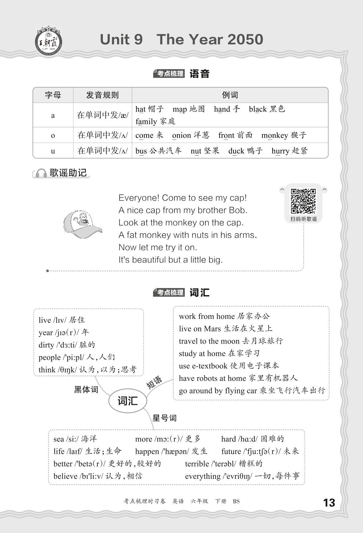 2024春下册六年级英语北师版 考点梳理手册——Unit 9 The Year 2050