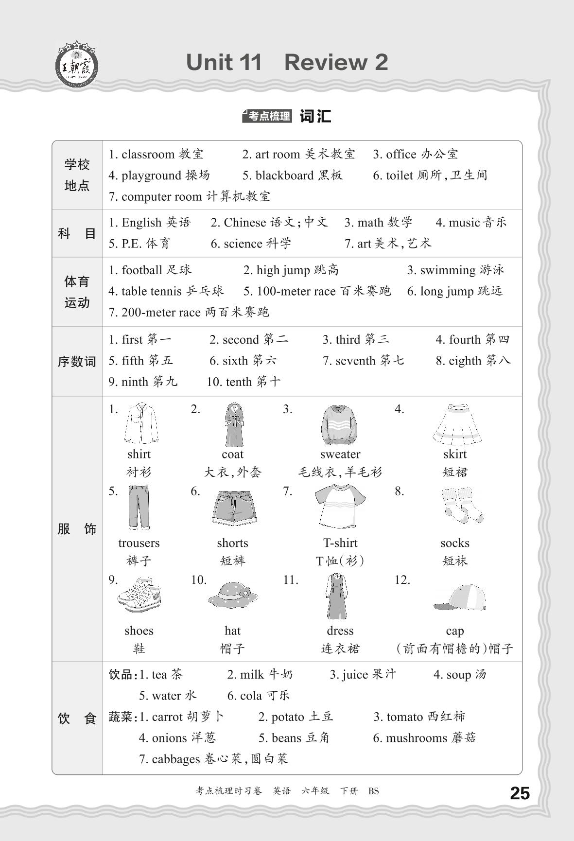 2024春下册六年级英语北师版 考点梳理手册——Unit 11 Review 2
