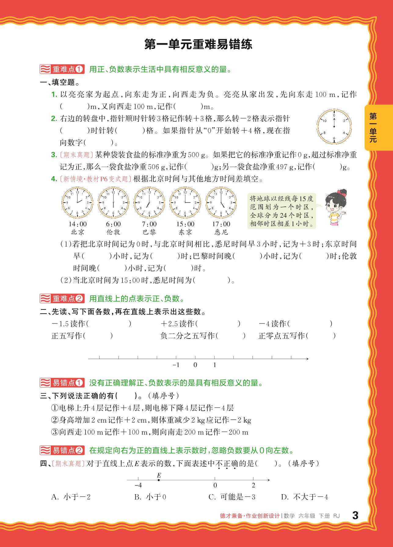 2024春下册六年级数学人教版 第一单元重难易错练