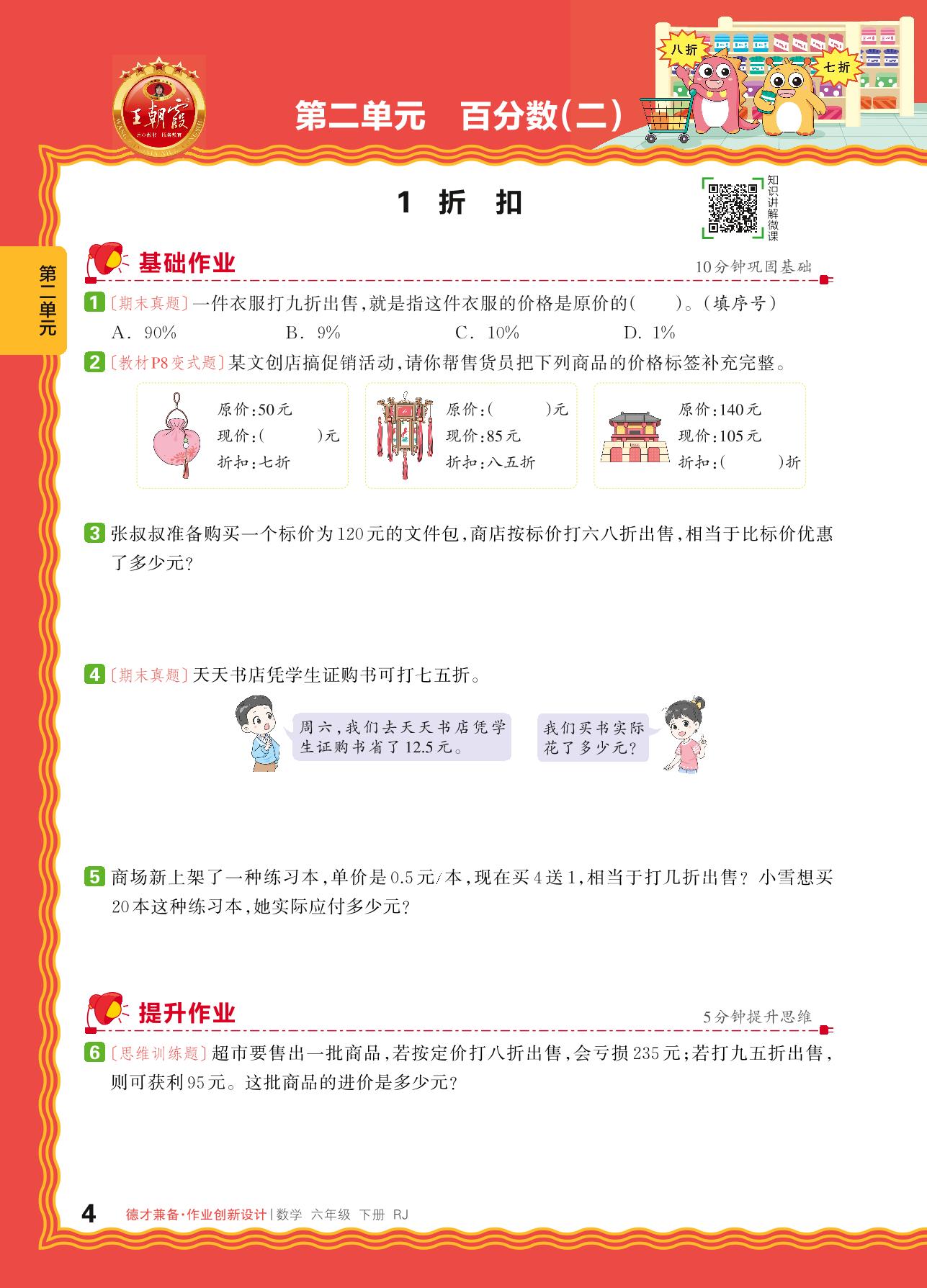 2024春下册六年级数学人教版 第二单元 百分数(二)——1. 折扣
