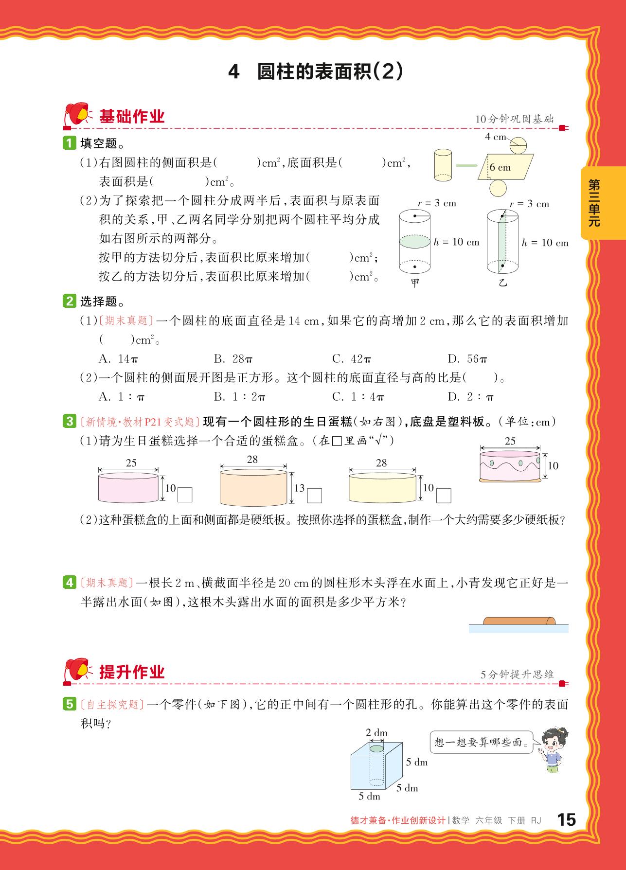 2024春下册六年级数学人教版 第三单元 圆柱与圆锥——4. 圆柱的表面积(2)