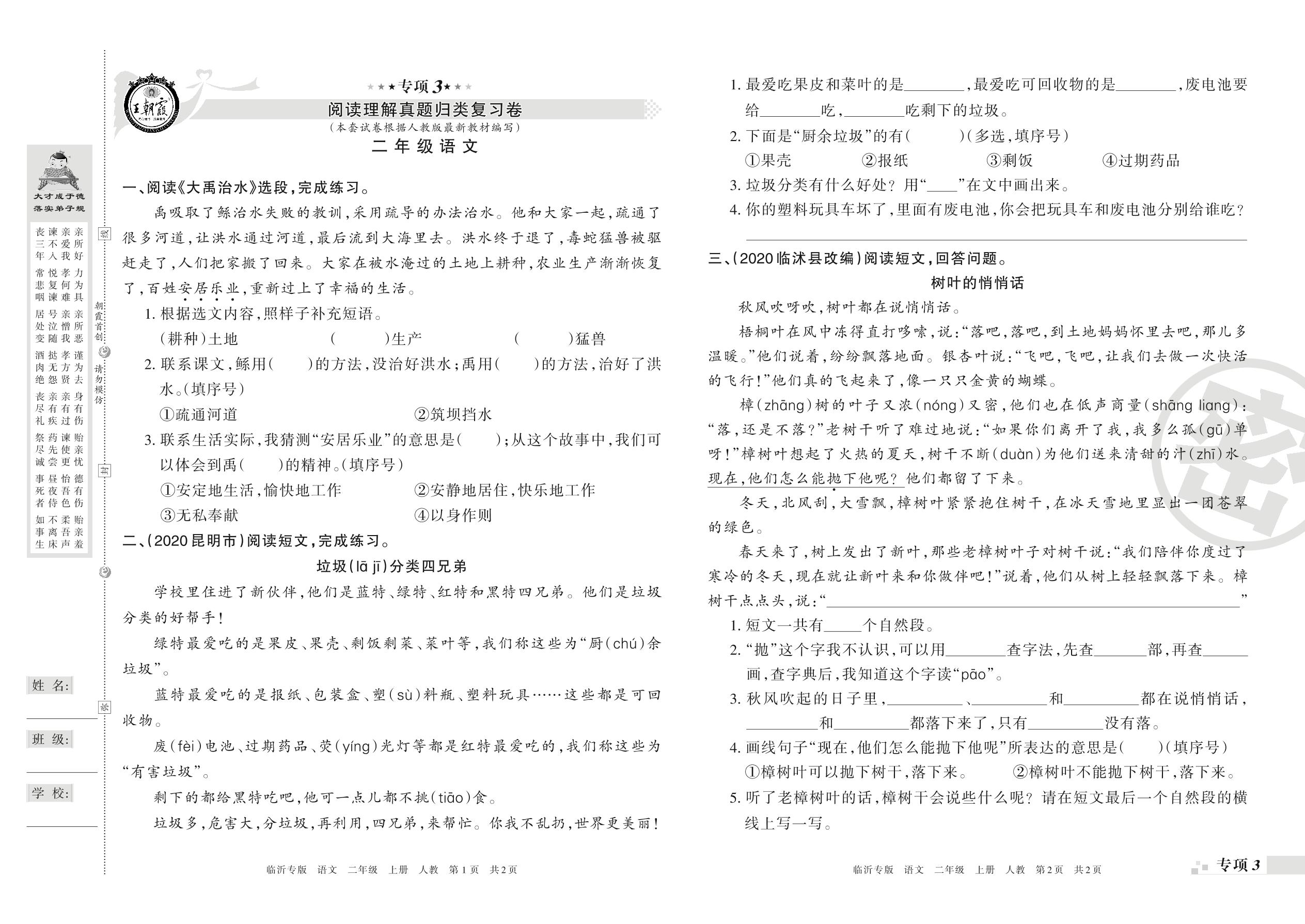 王朝霞期末专项卷——阅读理解、写话真题归类复习二年级上册语文(人教版)_R21080164515【0】