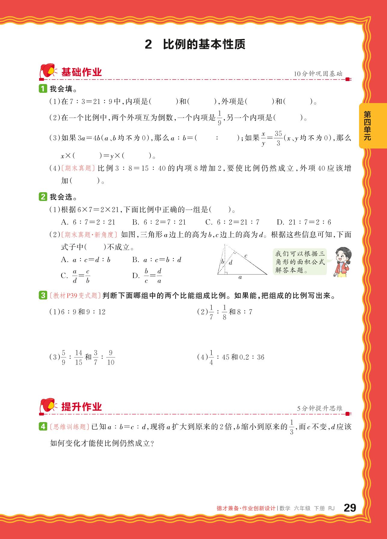 2024春下册六年级数学人教版 第四单元 比例——2. 比例的基本性质