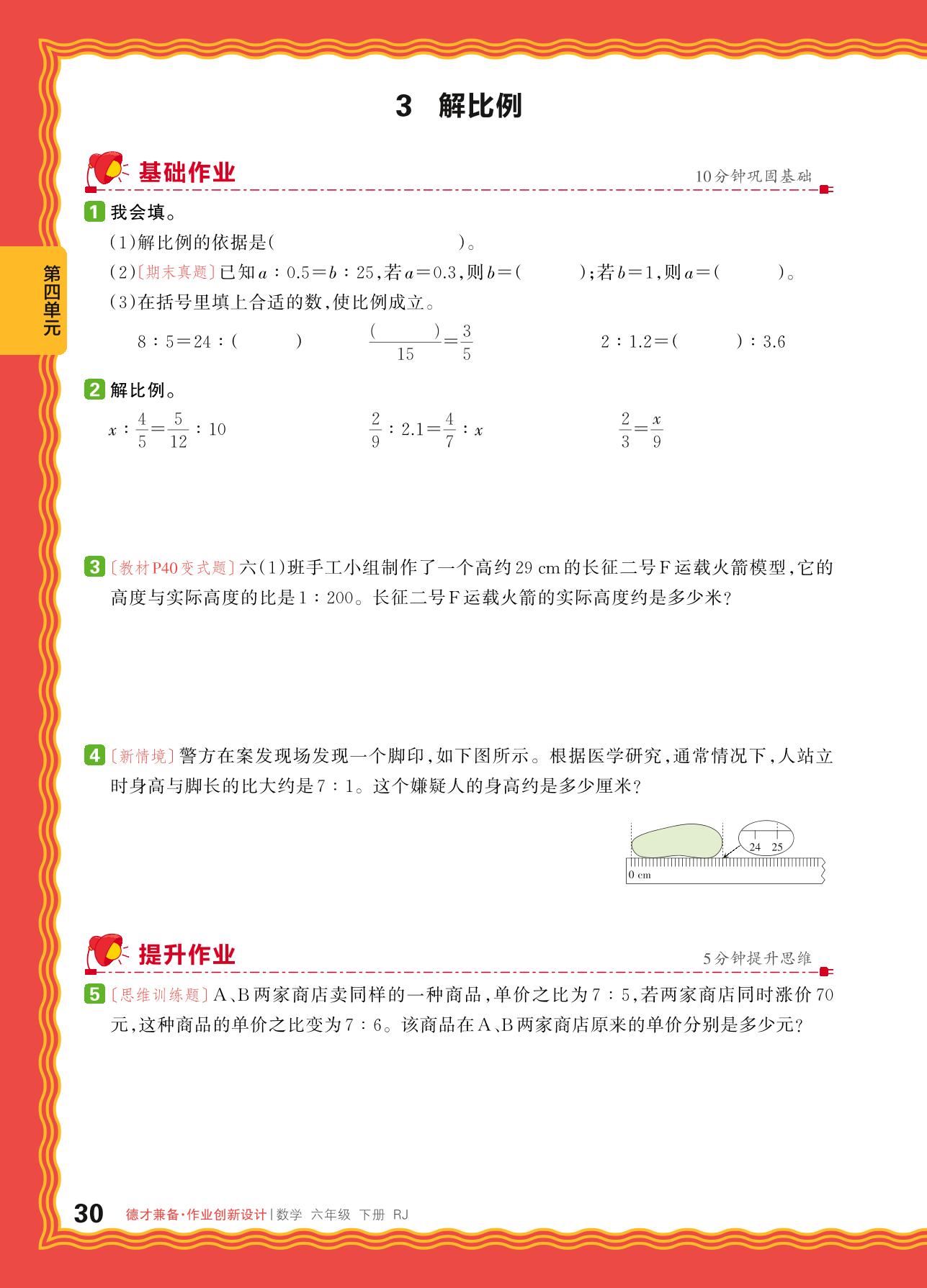 2024春下册六年级数学人教版 第四单元 比例——3. 解比例