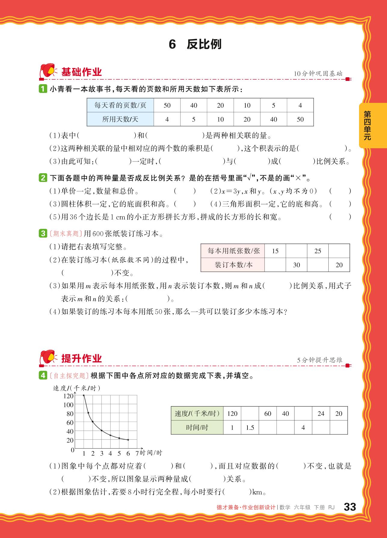 2024春下册六年级数学人教版 第四单元 比例——6. 反比例