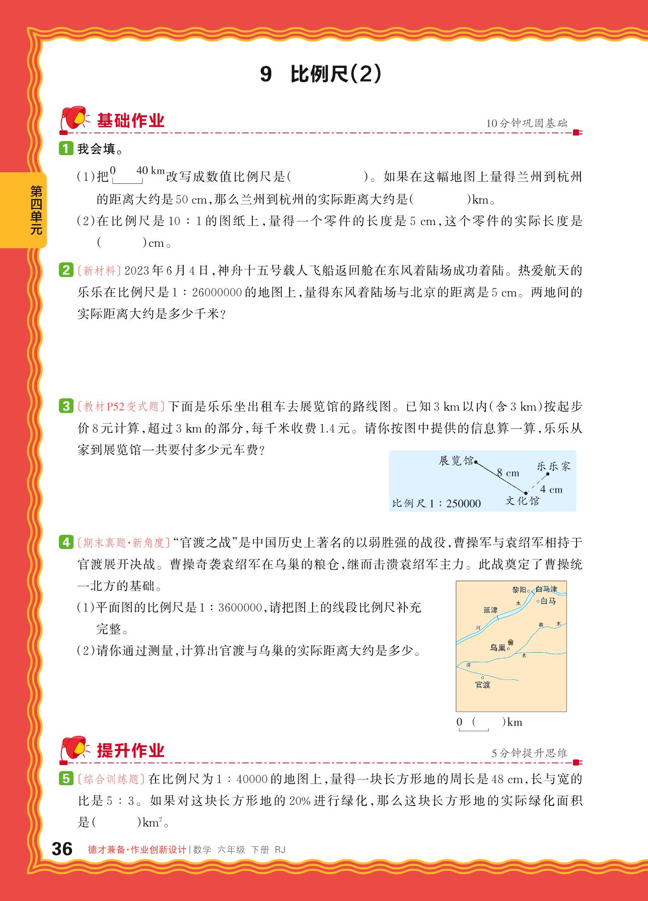 2024春下册六年级数学人教版 第四单元 比例——9. 比例尺(2)