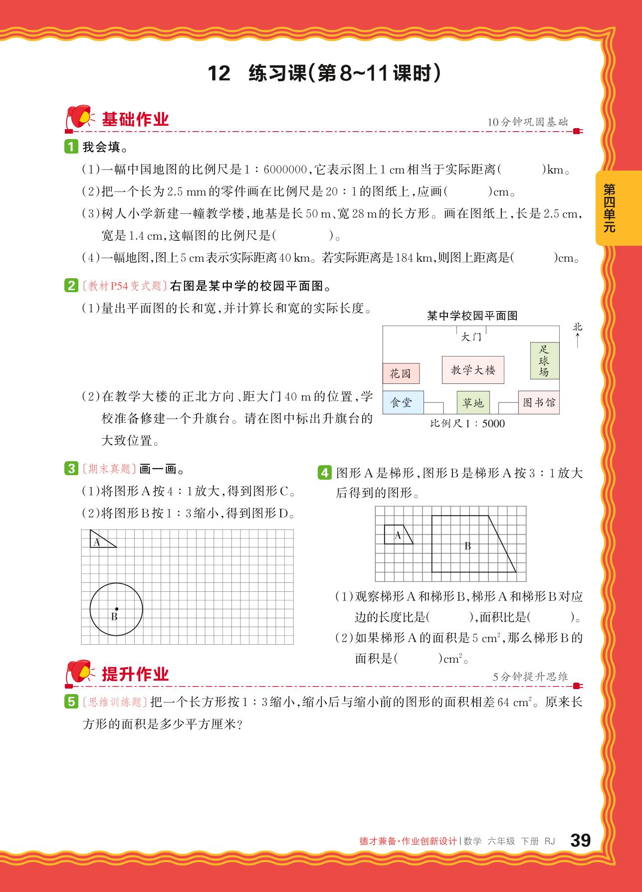 2024春下册六年级数学人教版 第四单元 比例——比例尺、图形的放大与缩小练习课