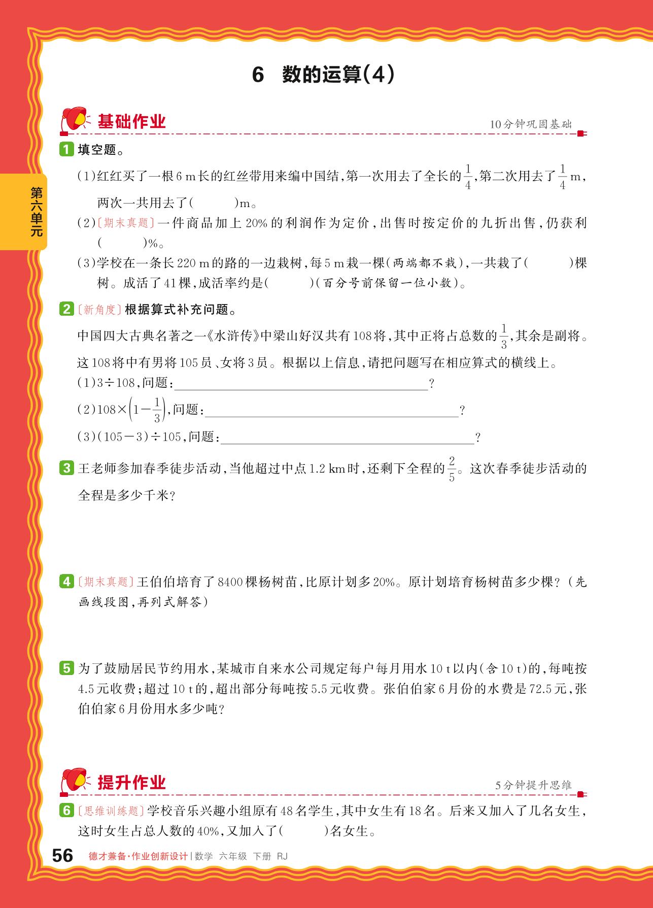 2024春下册六年级数学人教版 第六单元 整理和复习(数与代数)——6. 数的运算(4)