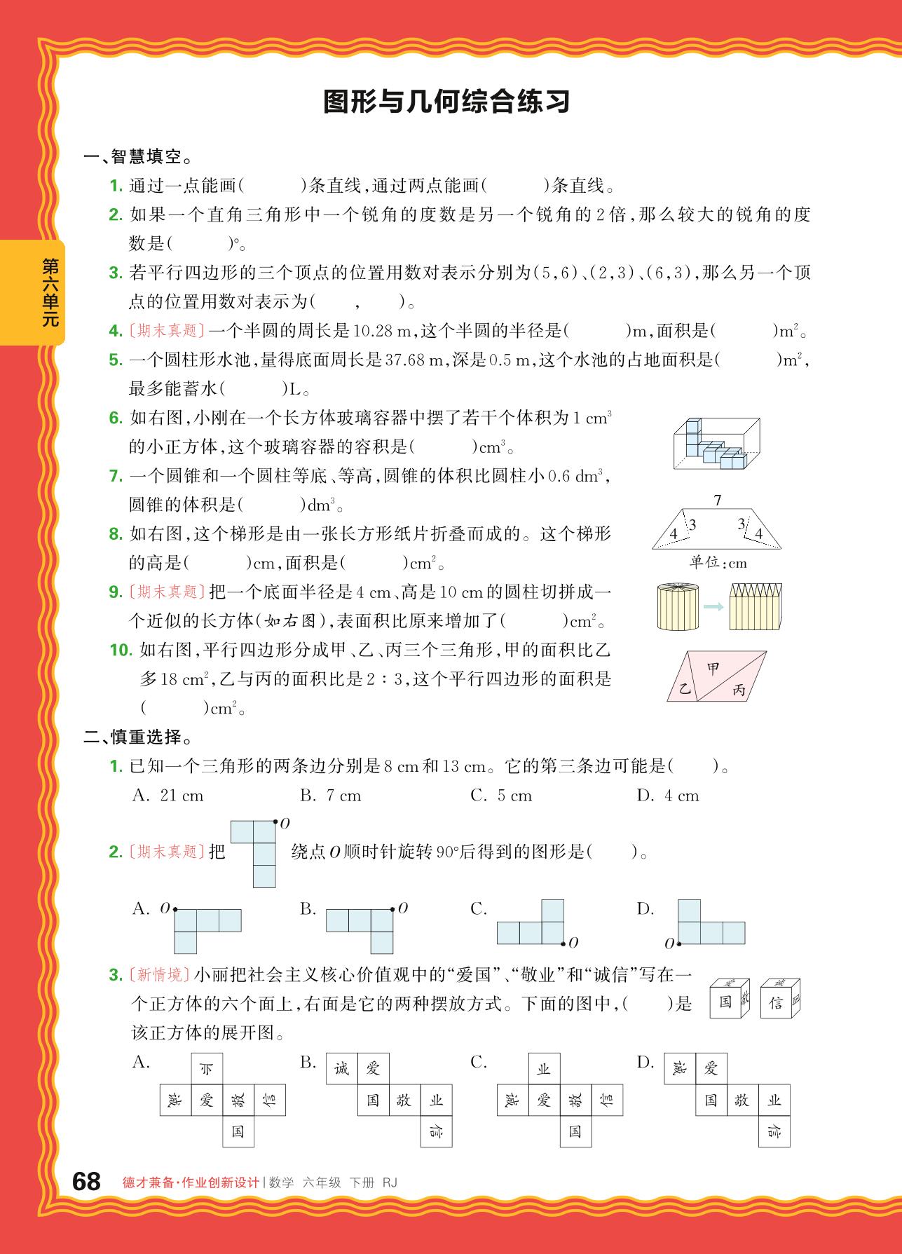 2024春下册六年级数学人教版 第六单元 整理和复习(图形与几何)——图形与几何综合练习