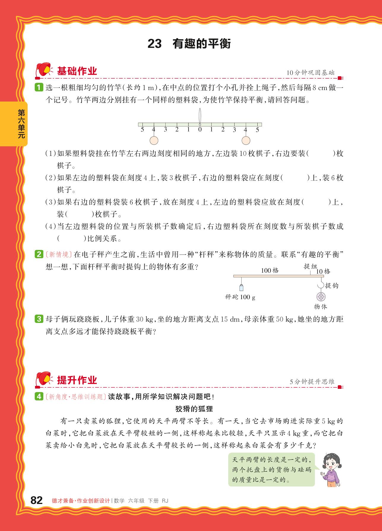 2024春下册六年级数学人教版 第六单元 整理和复习(综合与实践)——23. 有趣的平衡