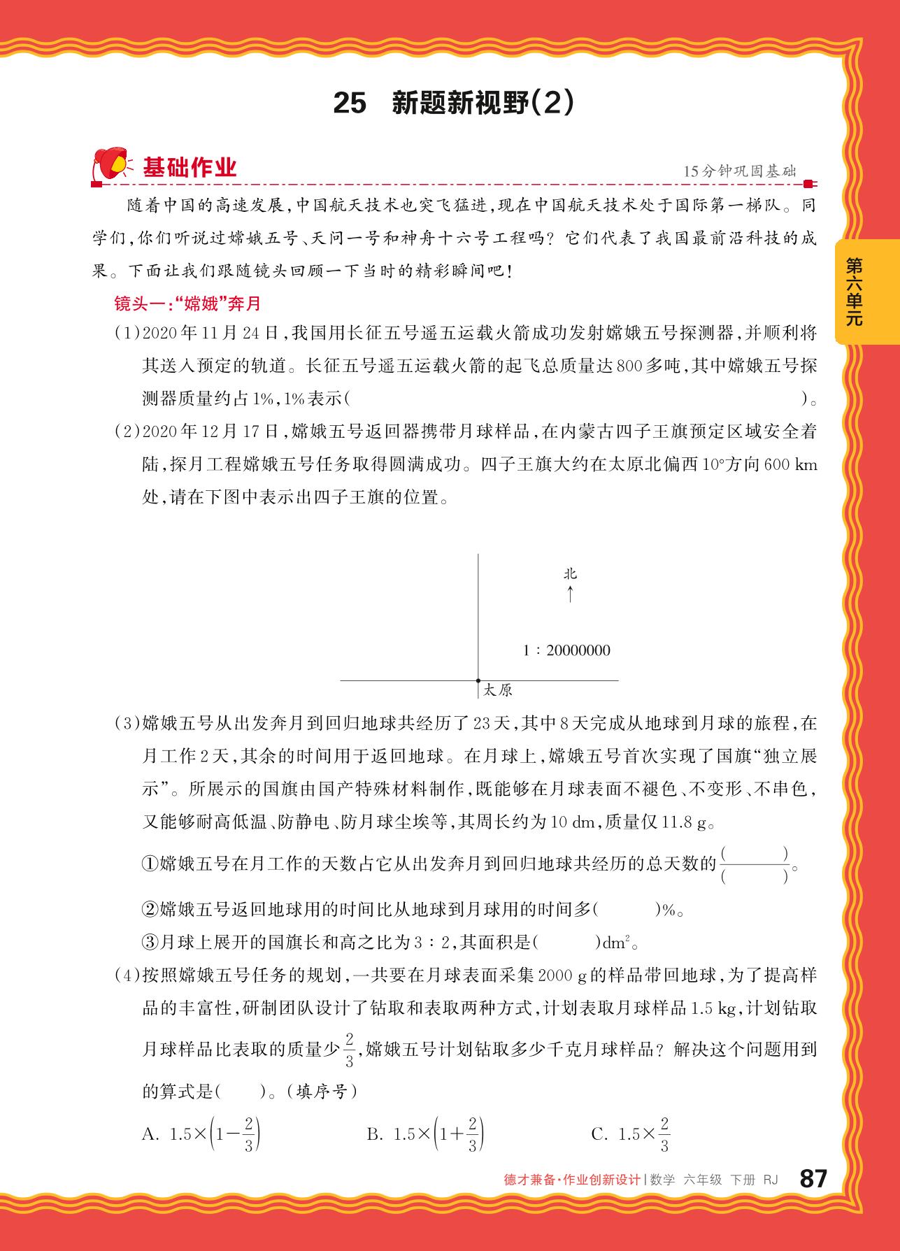 2024春下册六年级数学人教版 第六单元 整理和复习(新题新视野)——25. 新题新视野(2)