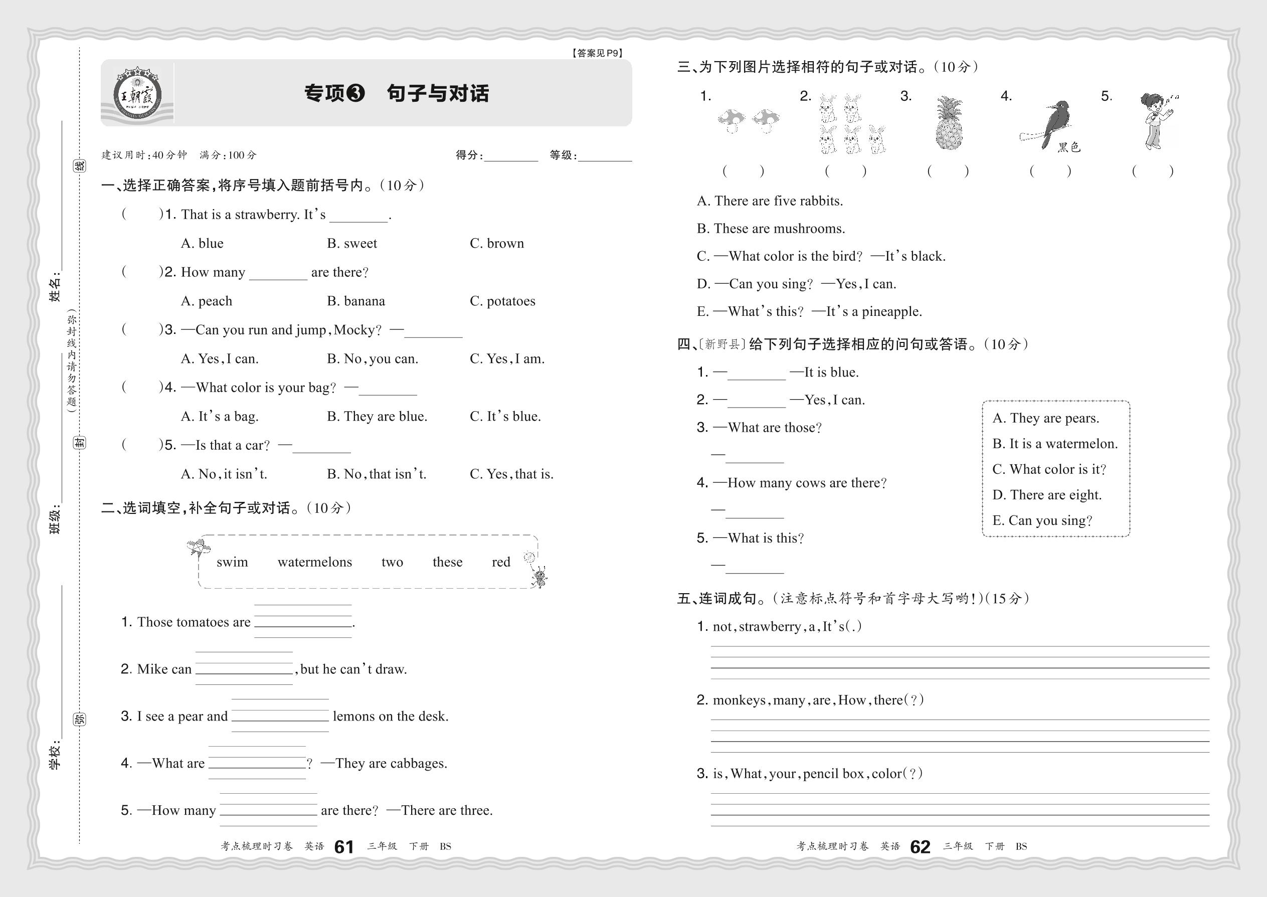 2024春下册三年级英语北师版 期末专项卷KD版·句子与对话【3】