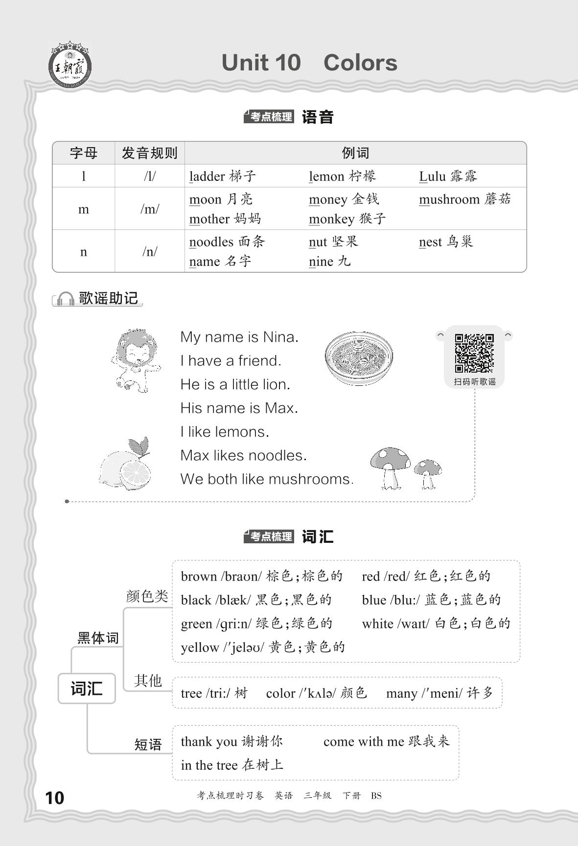 2024春下册三年级英语北师版 考点梳理手册——Unit 10 Colors