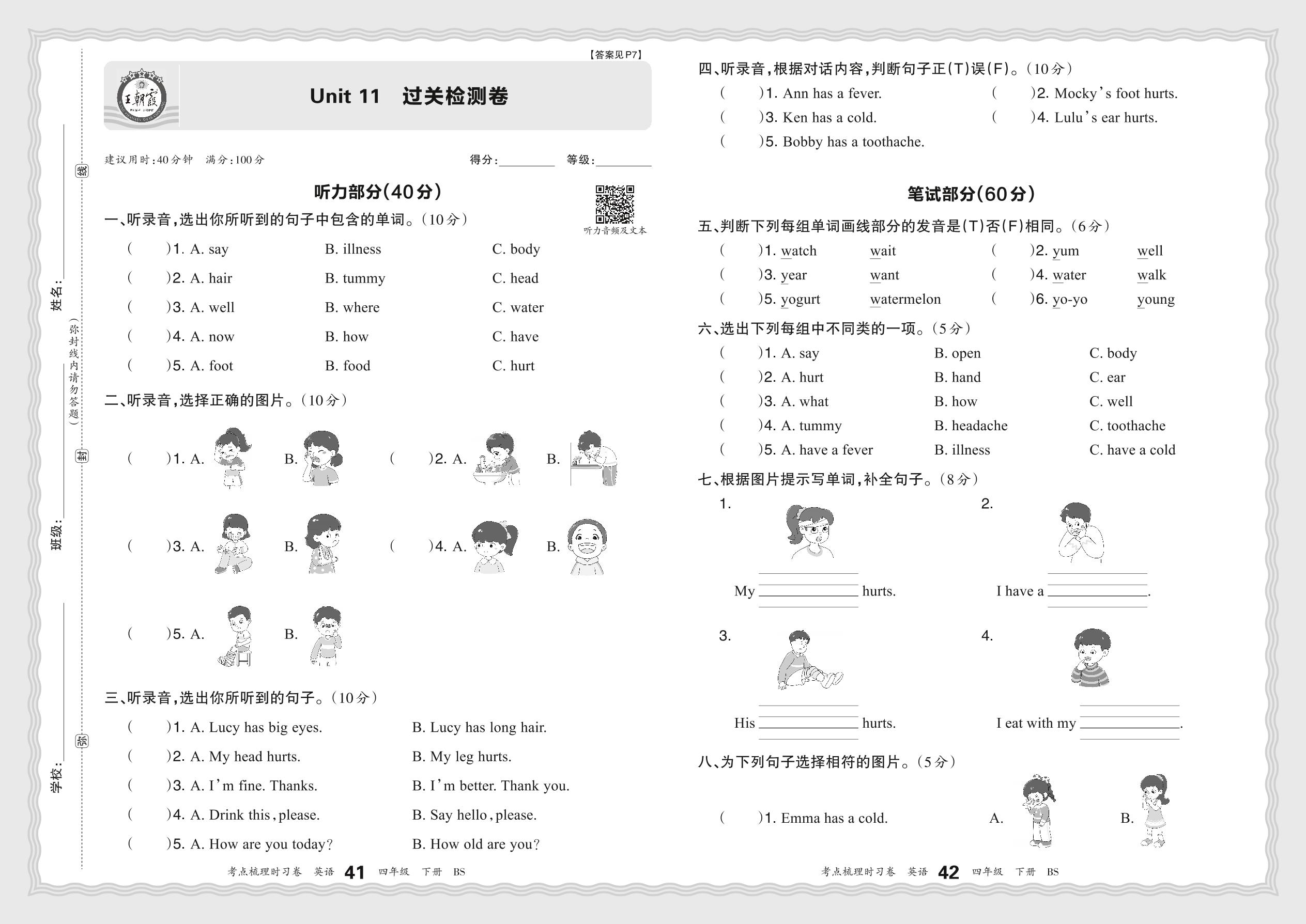2024春下册四年级英语北师版 Unit 11 过关检测卷