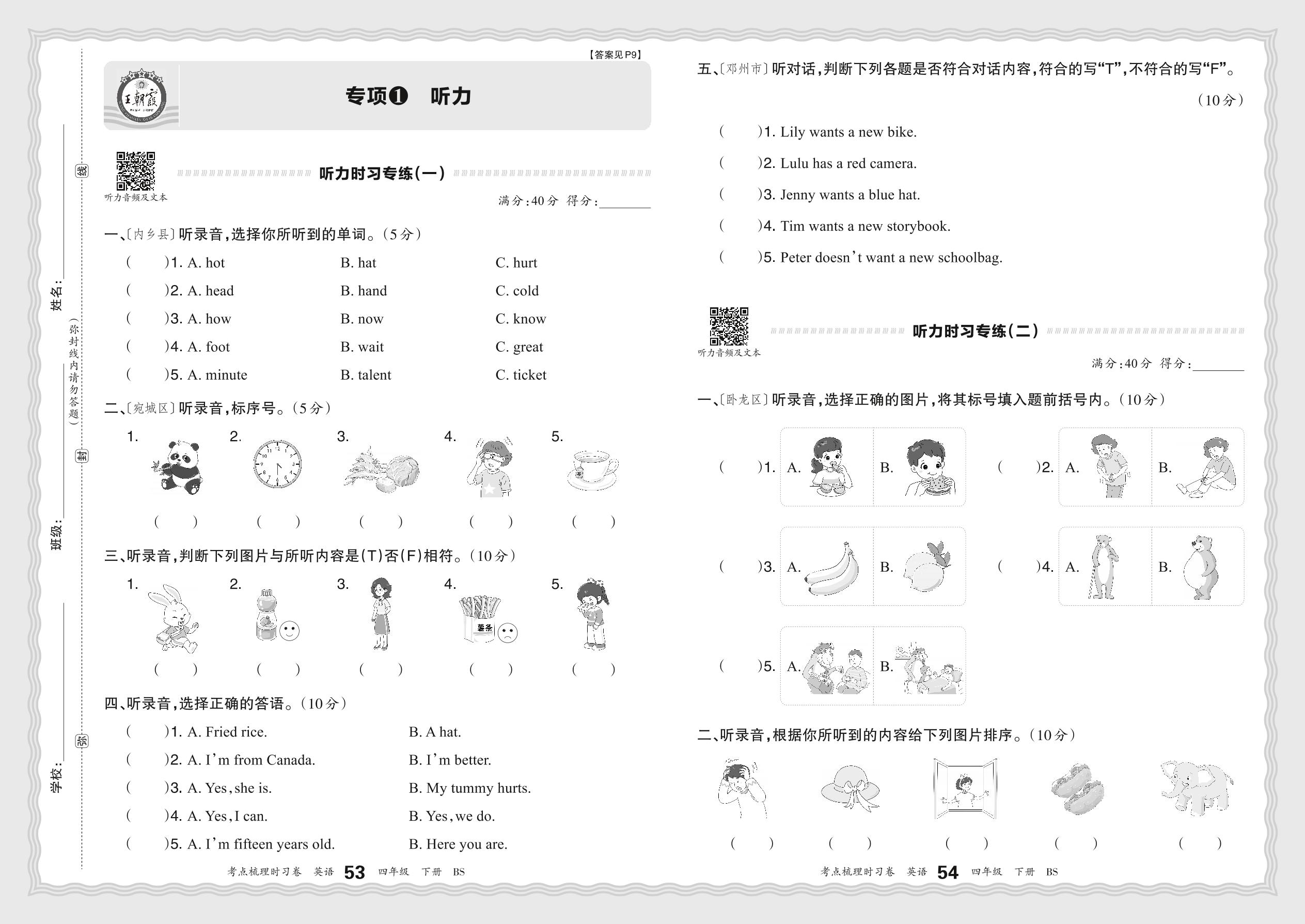 2024春下册四年级英语北师版 期末专项卷KD版·听力【1】