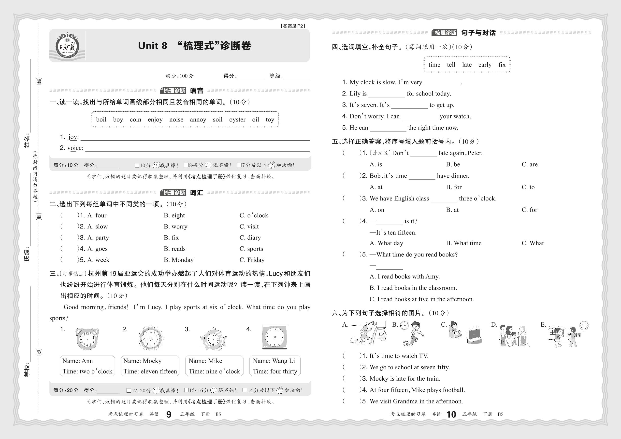 2024春下册五年级英语北师版 Unit 8 “梳理式”诊断卷