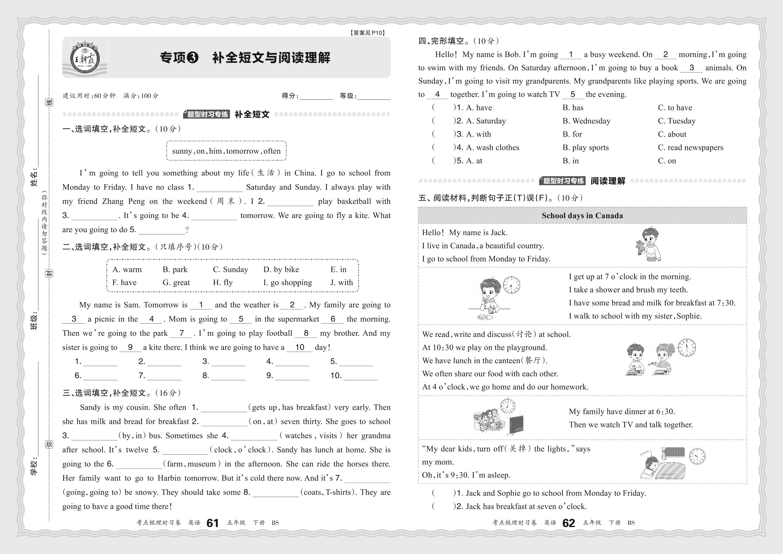 2024春下册五年级英语北师版 期末专项卷KD版·补全短文与阅读理解【3】
