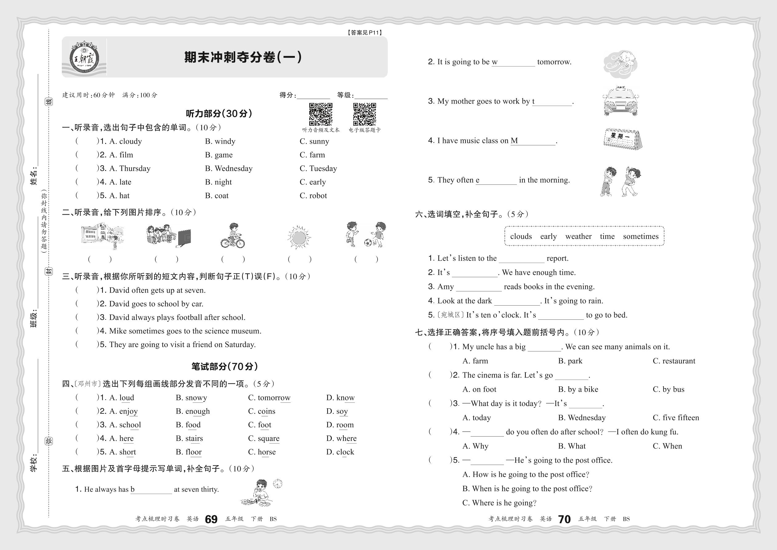 2024春下册五年级英语北师版 期末冲刺夺分卷(一)