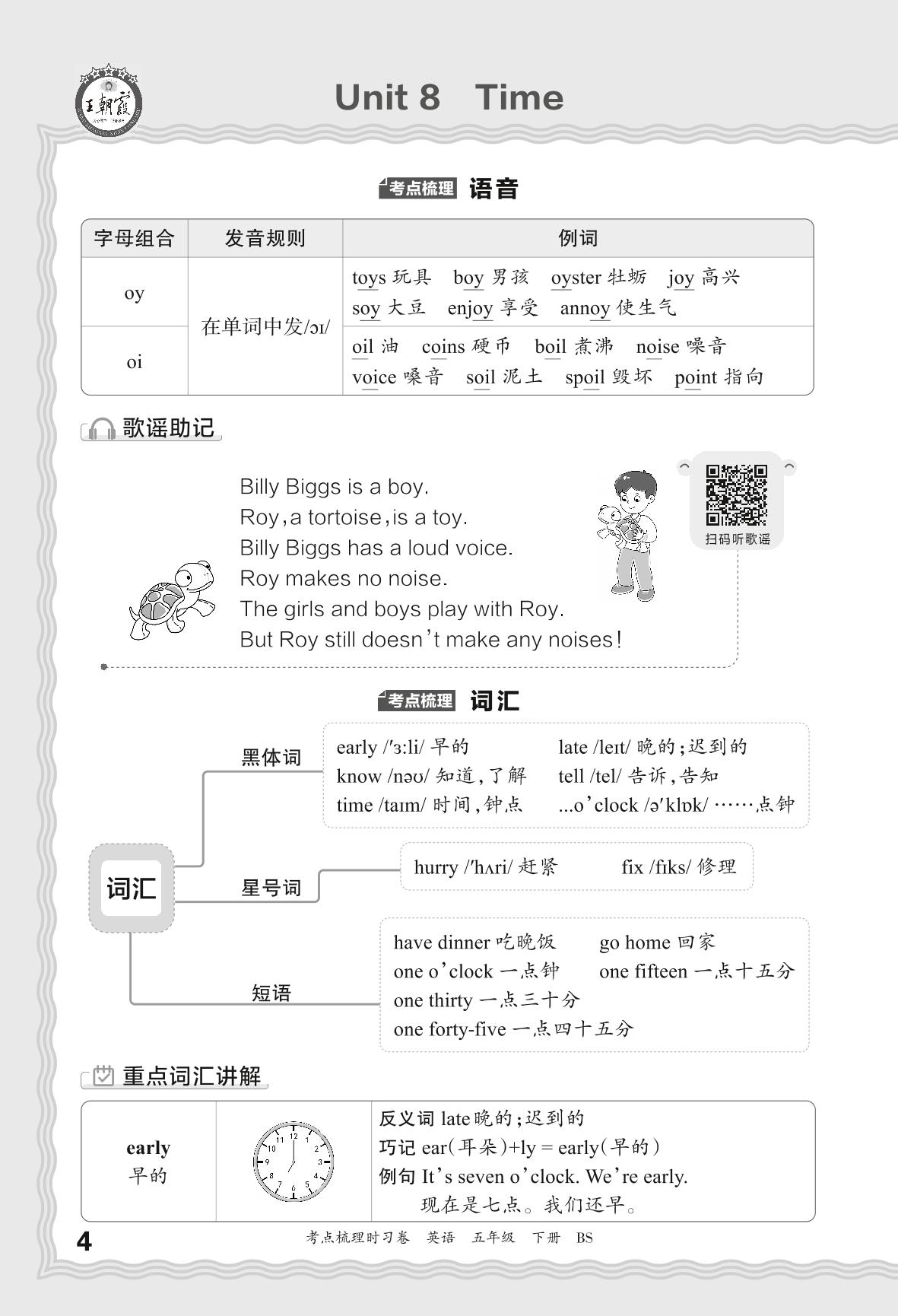 2024春下册五年级英语北师版 考点梳理手册——Unit 8 Time