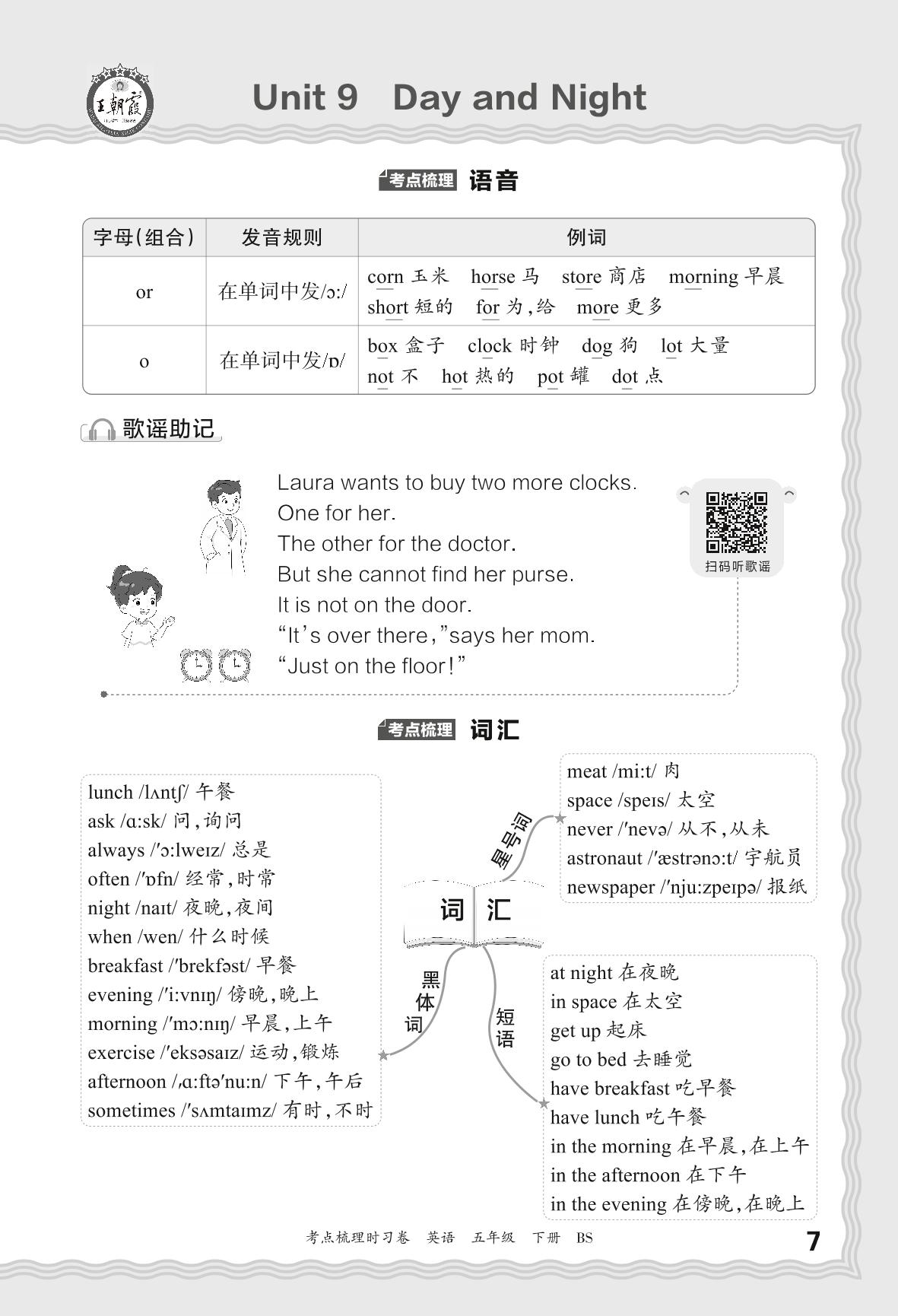 2024春下册五年级英语北师版 考点梳理手册——Unit 9 Day and Night