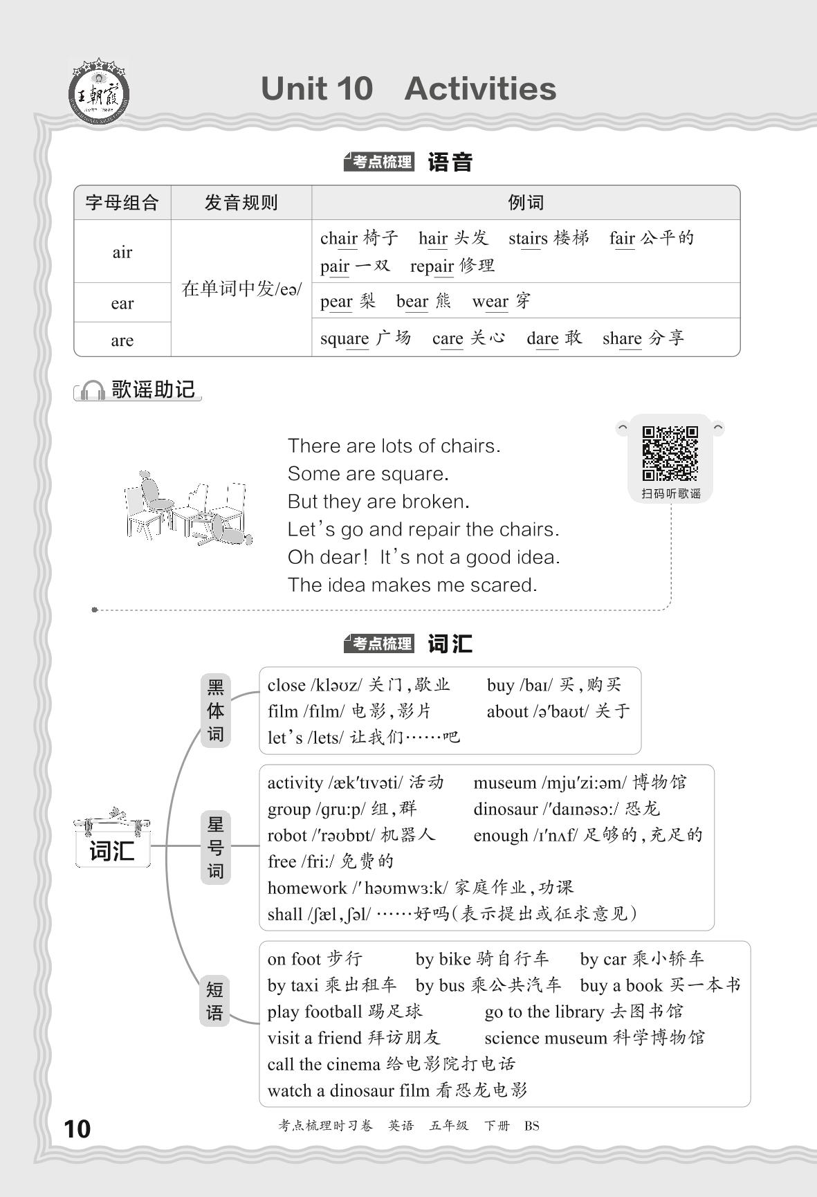 2024春下册五年级英语北师版 考点梳理手册——Unit 10 Activities