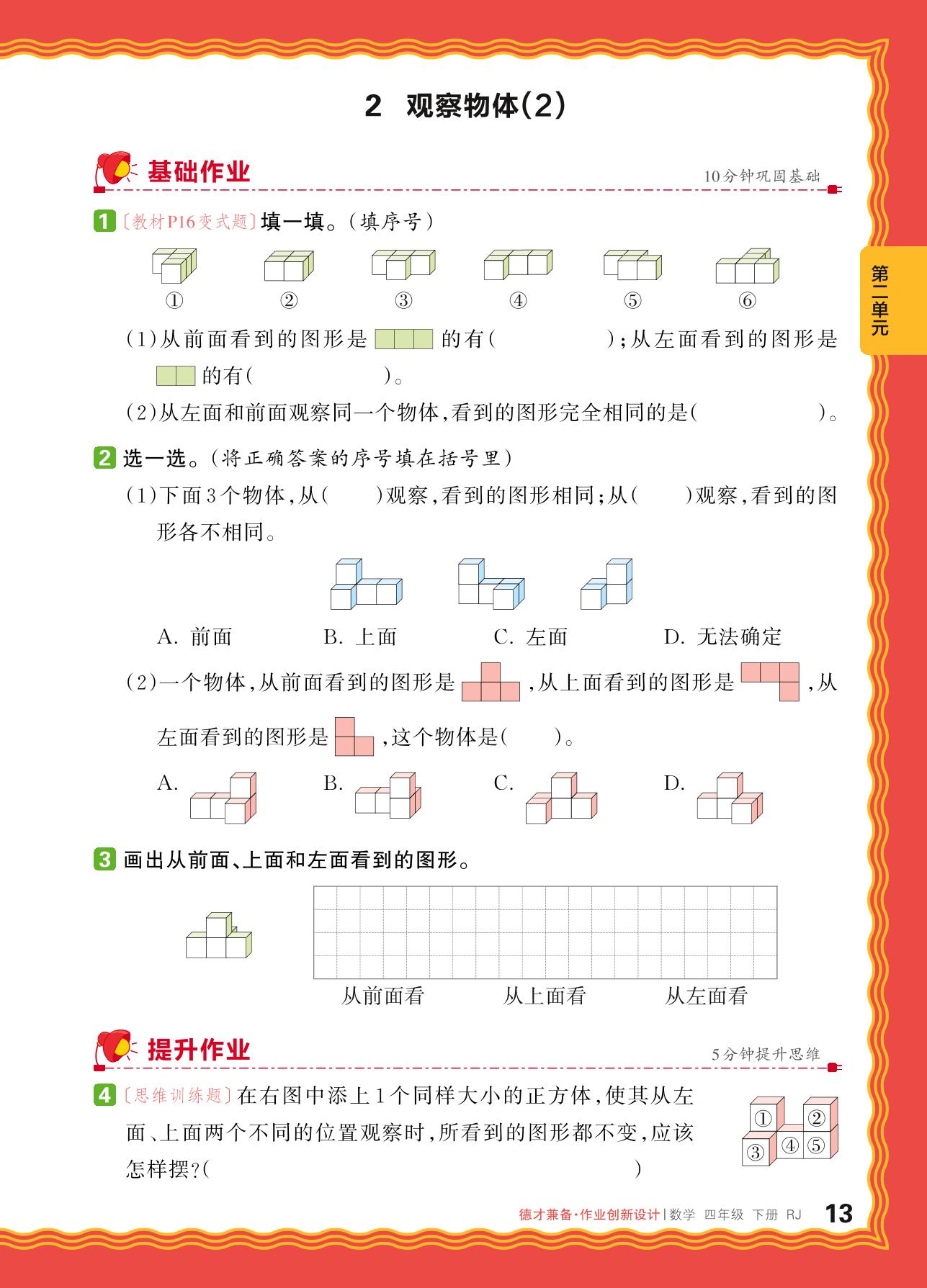 2024春下册四年级数学人教版 第二单元 观察物体(二)——2. 观察物体(2)