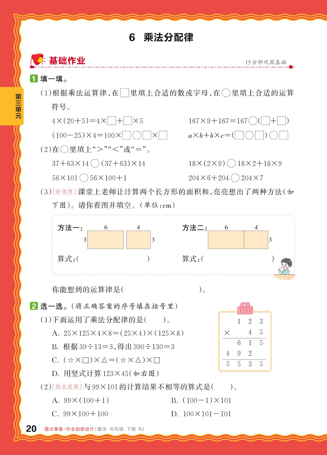 2024春下册四年级数学人教版 第三单元 运算律——6. 乘法分配律