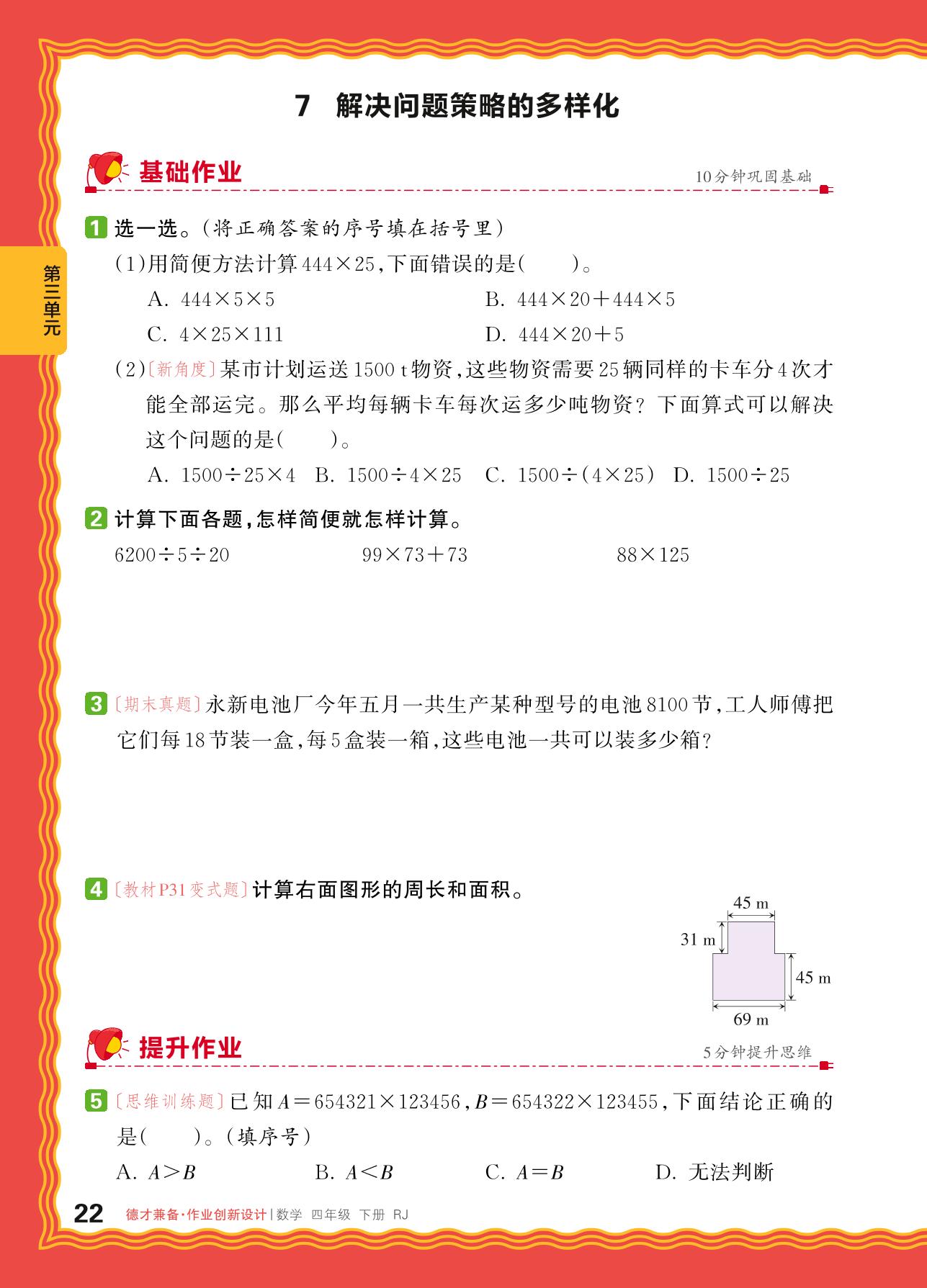 2024春下册四年级数学人教版 第三单元 运算律——7. 解决问题策略的多样化