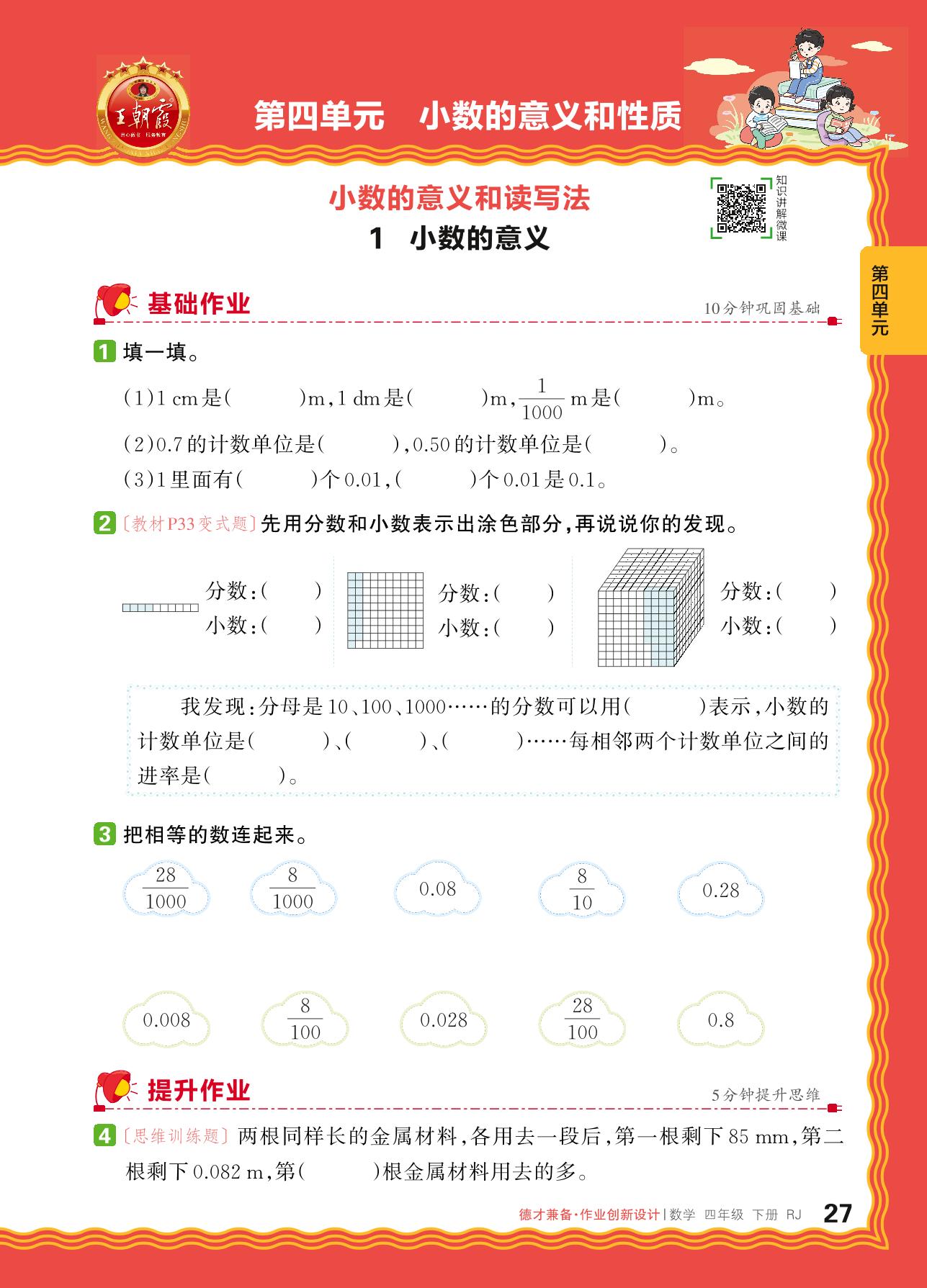 2024春下册四年级数学人教版 第四单元 小数的意义和性质——1. 小数的意义