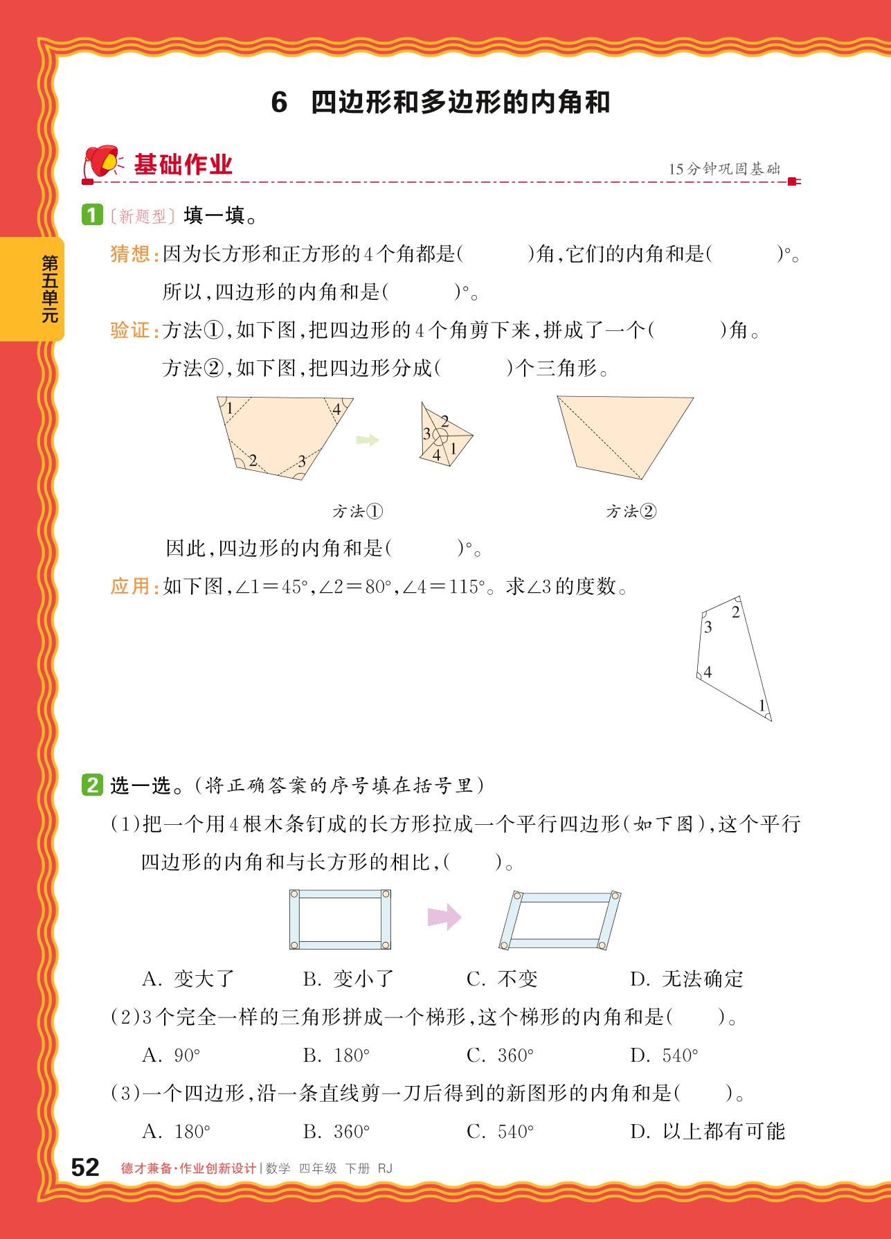 2024春下册四年级数学人教版 第五单元 三角形——6. 四边形和多边形的内角和