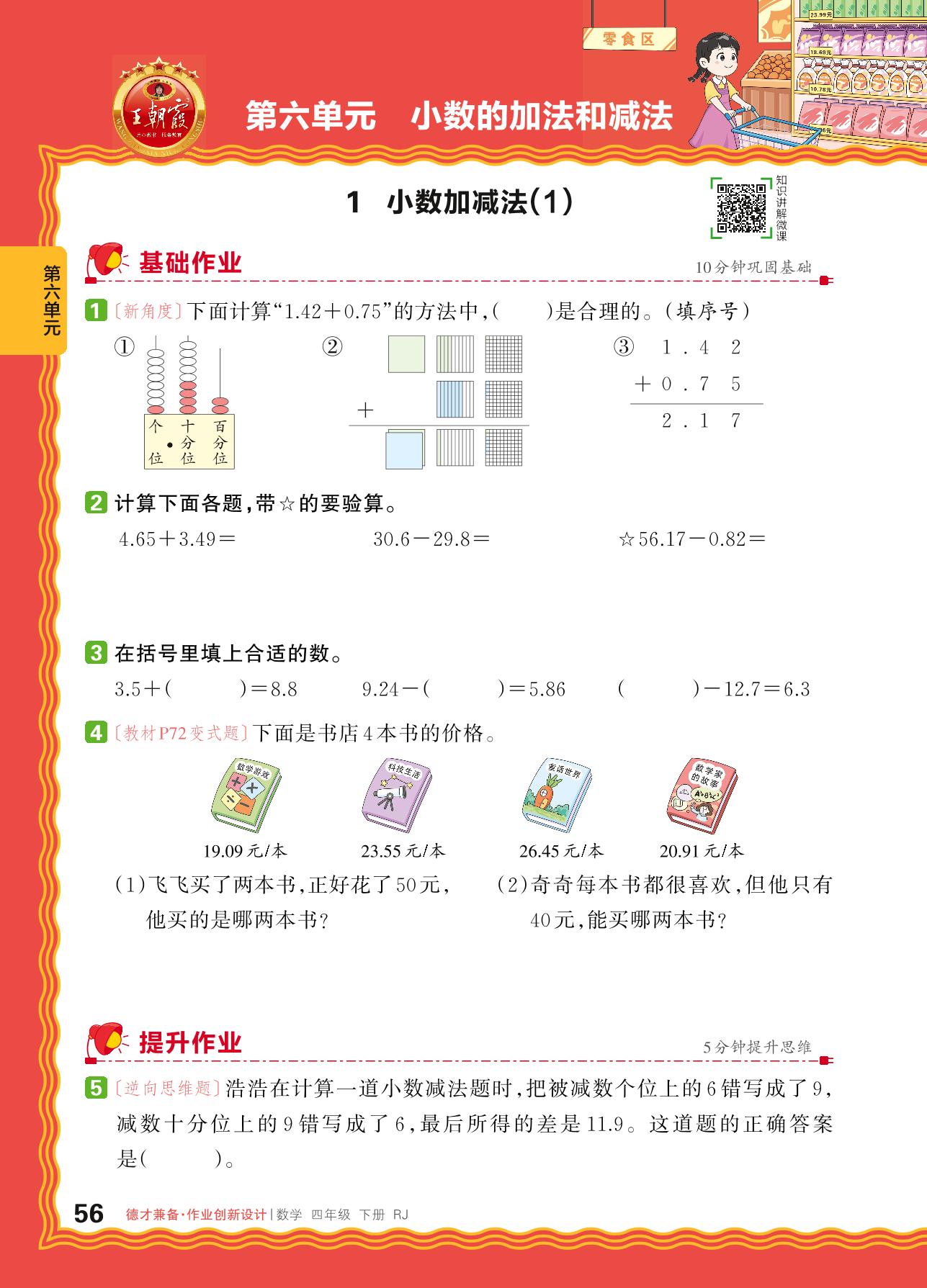 2024春下册四年级数学人教版 第六单元 小数的加法和减法——1. 小数加减法(1)