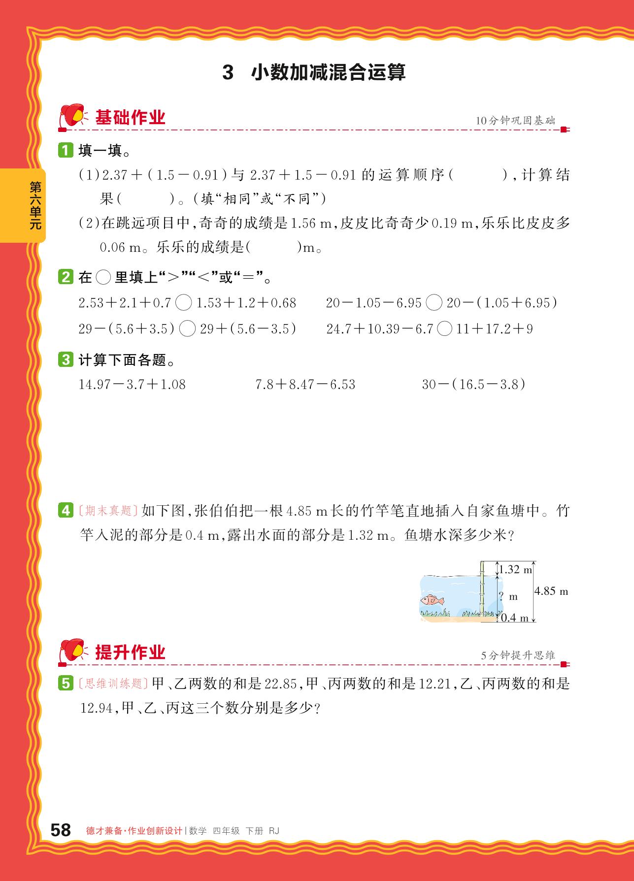 2024春下册四年级数学人教版 第六单元 小数的加法和减法——3. 小数加减混合运算