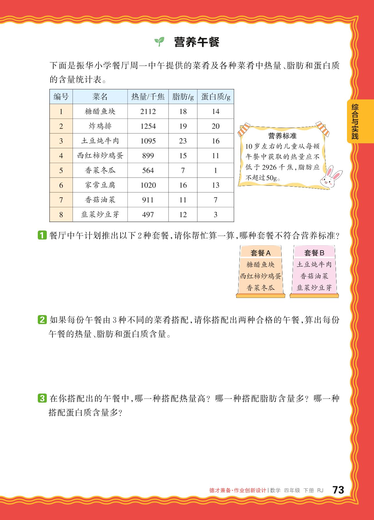 2024春下册四年级数学人教版 综合与实践——营养午餐
