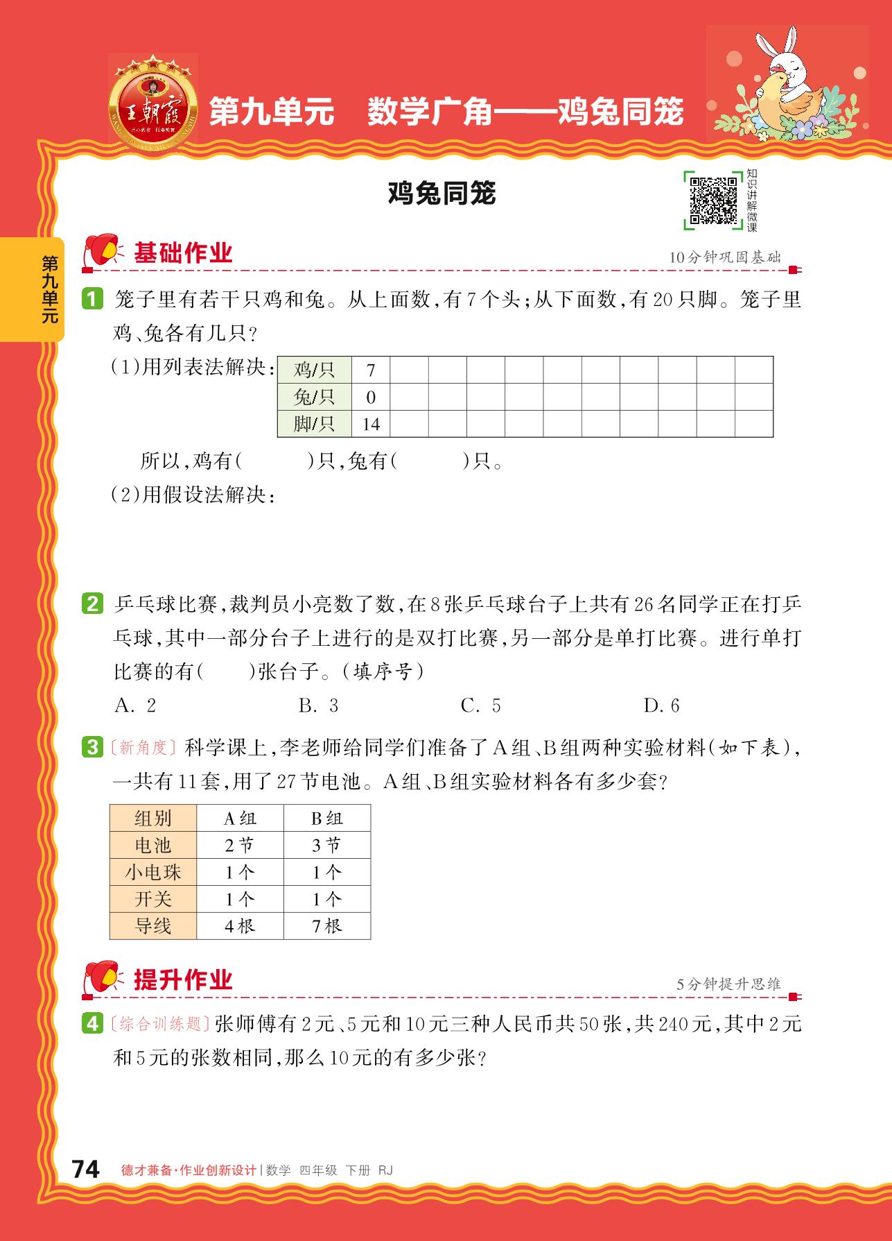 2024春下册四年级数学人教版 第九单元 数学广角 鸡兔同笼——鸡兔同笼