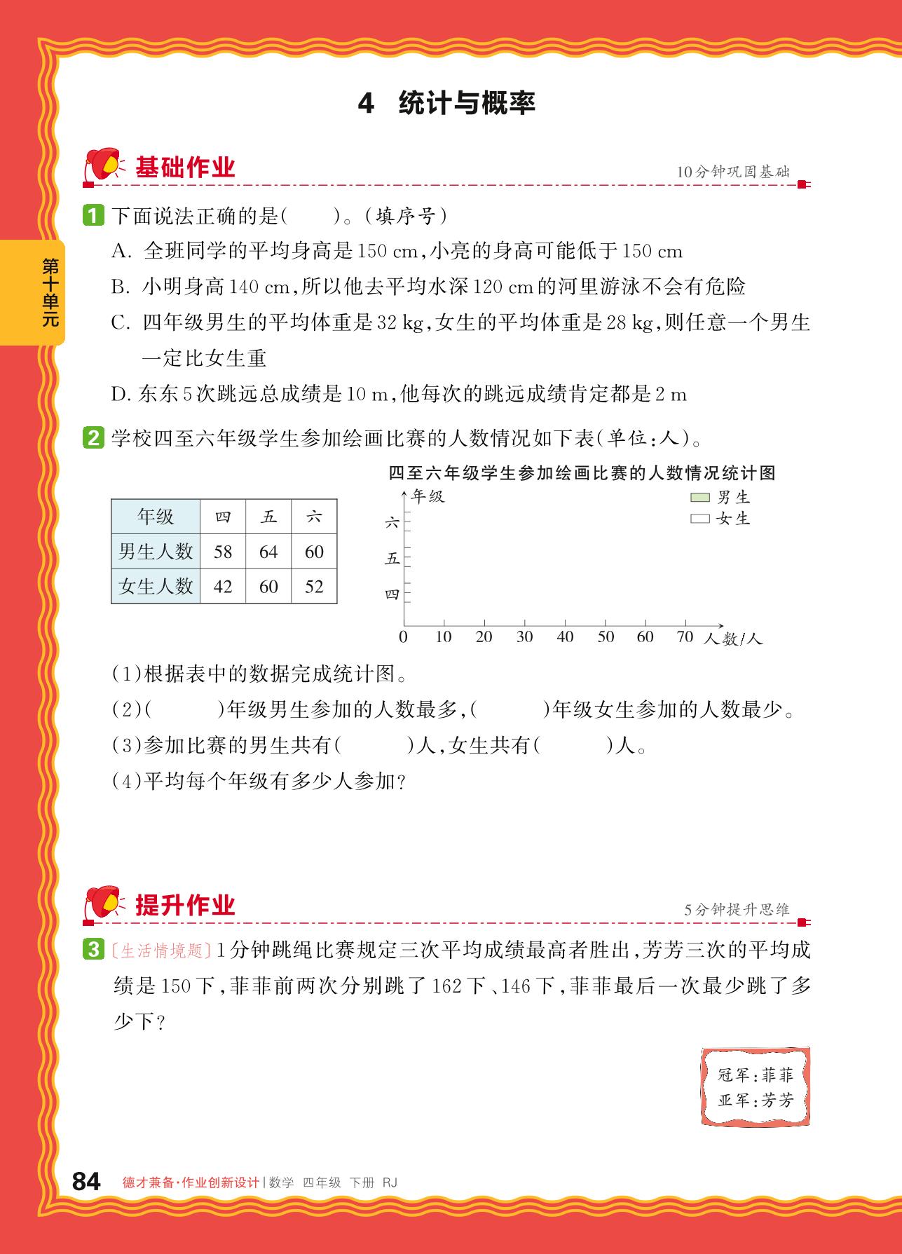 2024春下册四年级数学人教版 第十单元 总复习——4. 统计与概率